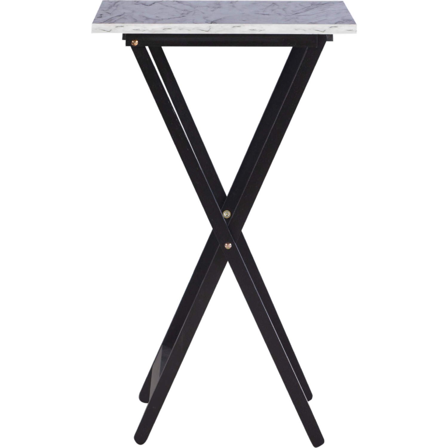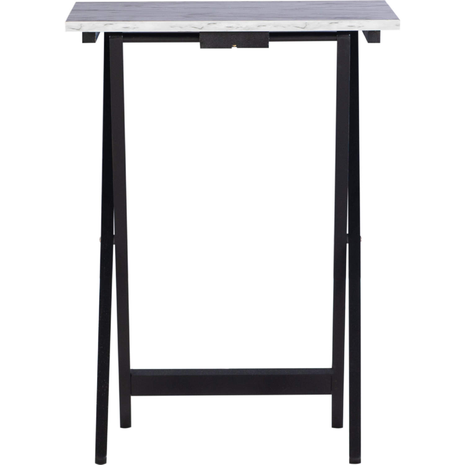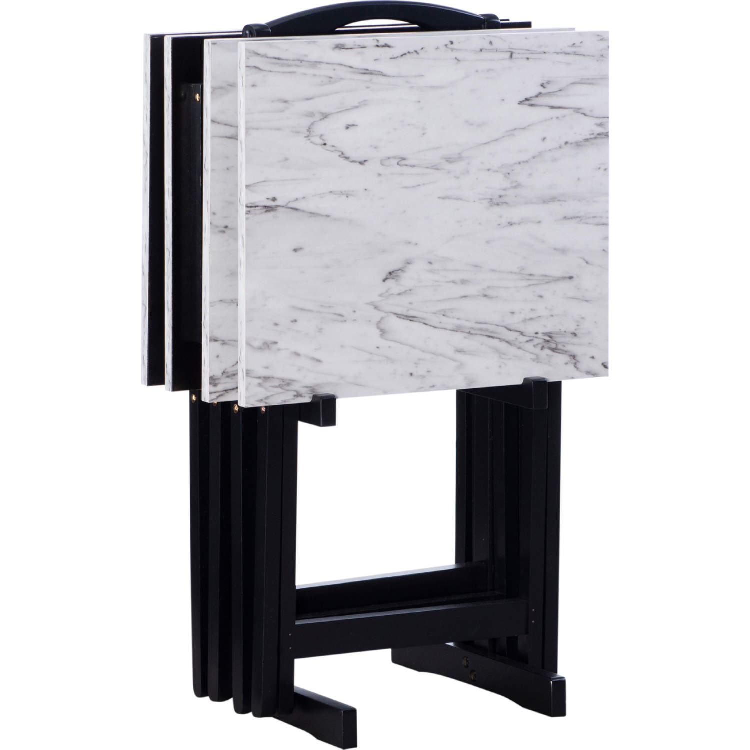Linon 43001WHTSET-01-AS Linon Tray Table Set White Faux Marble Black
