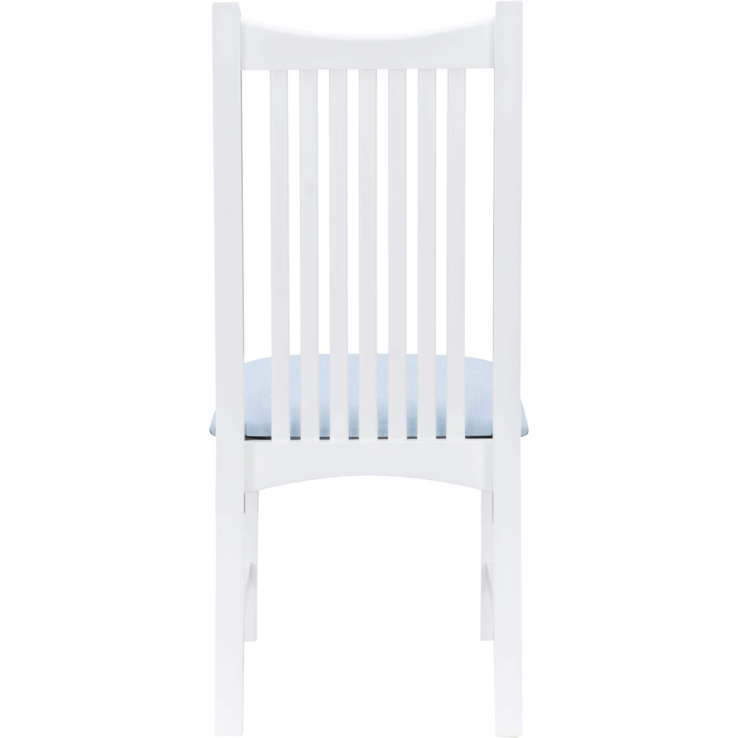 • Classic slatted back design and an easy to clean light blue faux leather upholstered seat