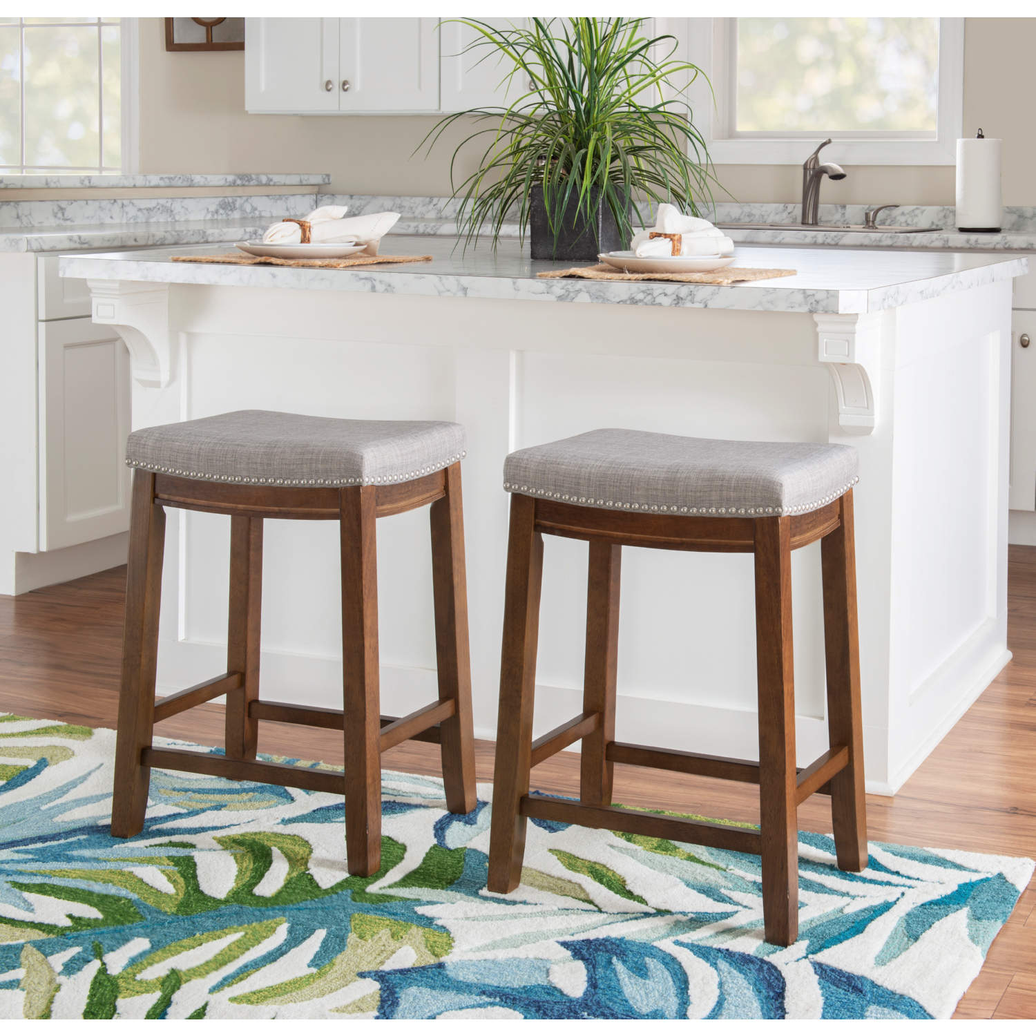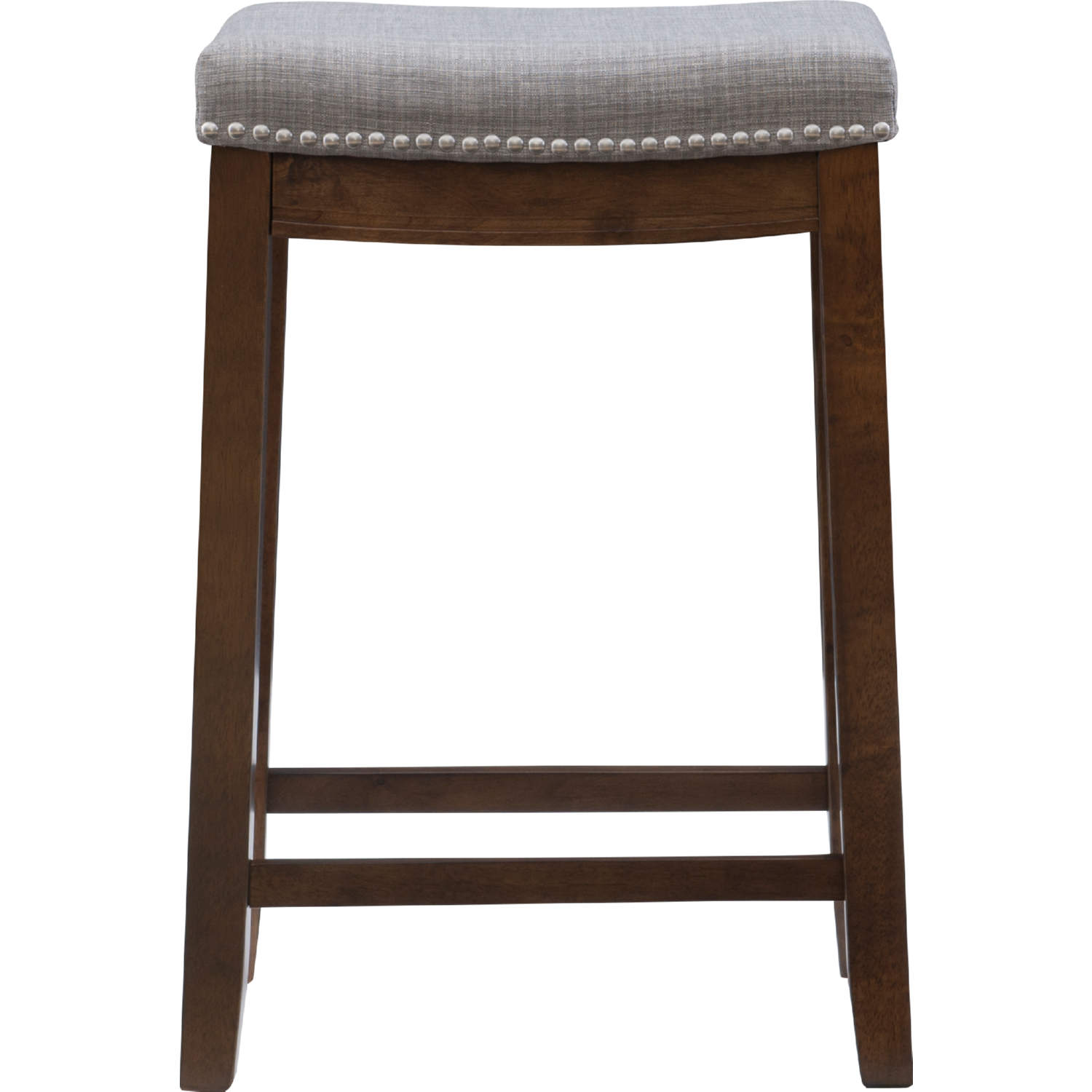 Linon CS227GRY01U Claridge Counter Stool Gray Linen Rustic Brown Wood