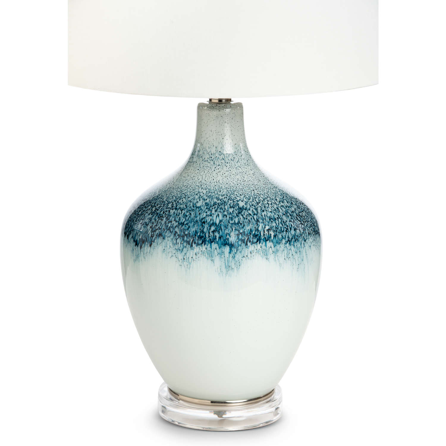 • Striking fusion of blue and white glass reminiscent of the ocean meeting the shore