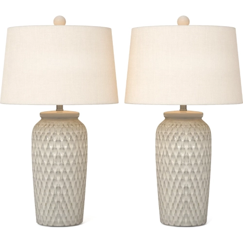 Lux Lighting Luna 27" Table Lamp in White Ceramic with Gentle Distressing (Set of 2)