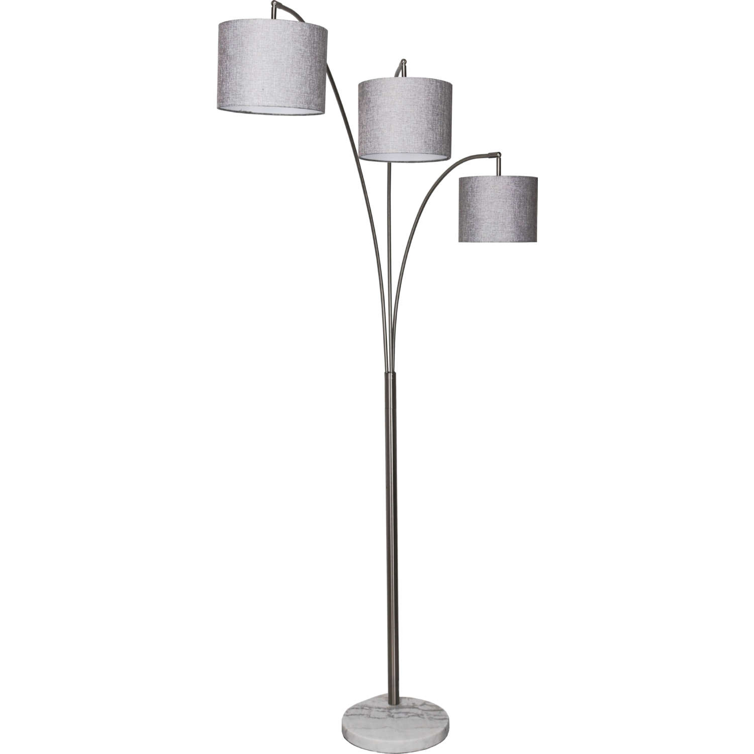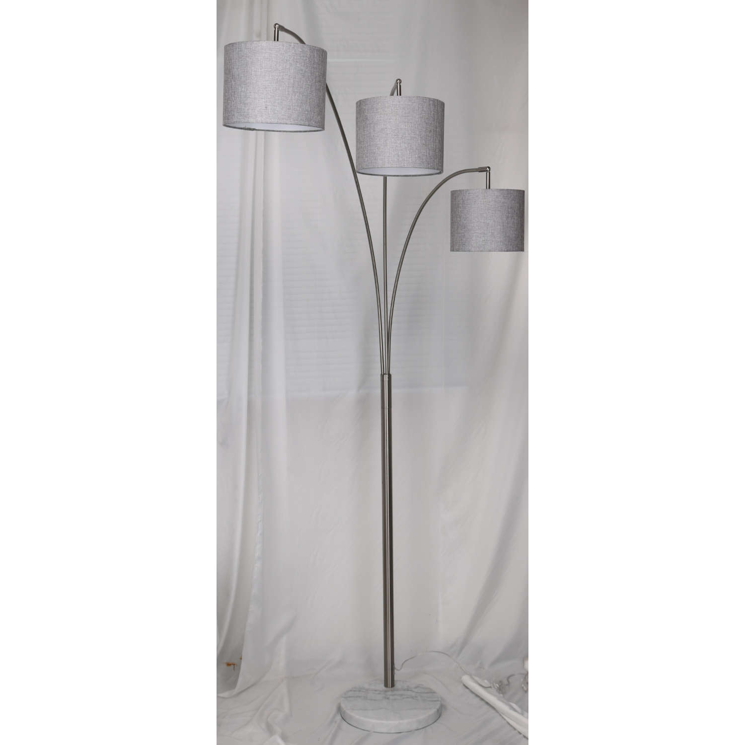 Lux Lighting Brady 80"H 3 Arm Floor Lamp in Steel & Grey Linen Shade