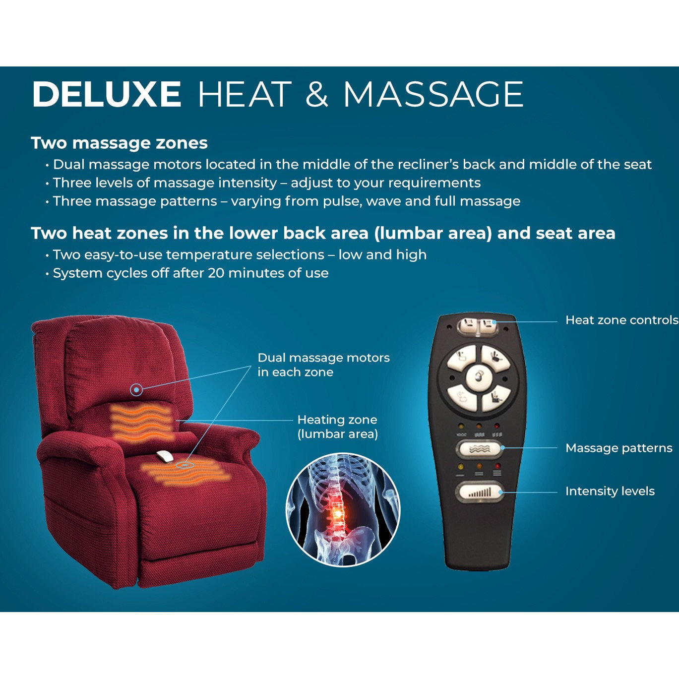 Mega Motion Angus Layflat Lift Recliner with Heat & Massage in Slate Grey Fabric