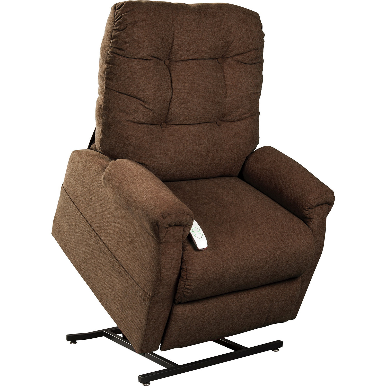 Mega Motion Popstitch Layflat Lift Recliner in Java Brown Fabric