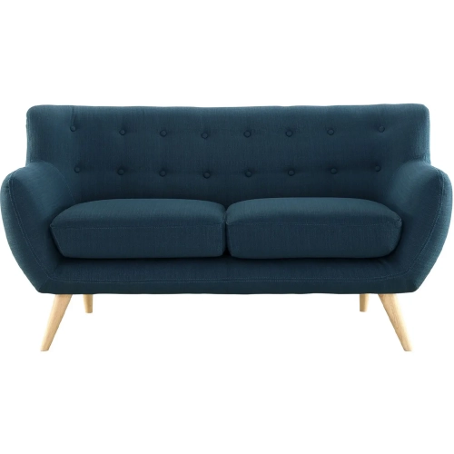 Modway EEI-1632-AZU Remark Loveseat Tufted Azure Fabric Natural Finish Wood Legs