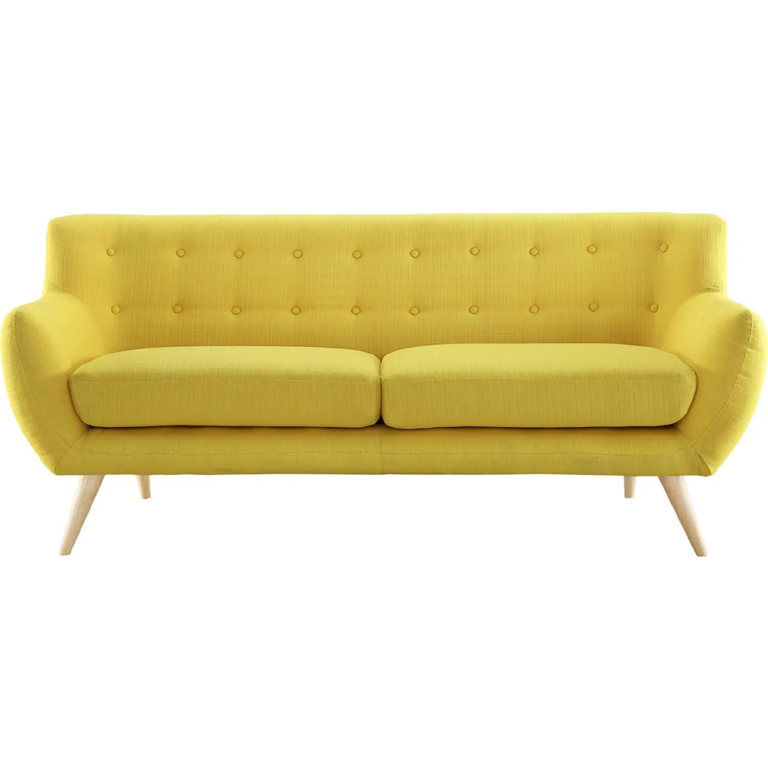 Modway EEI-1633-SUN Remark Sofa Tufted Sunny Fabric Natural Finish Wood Legs