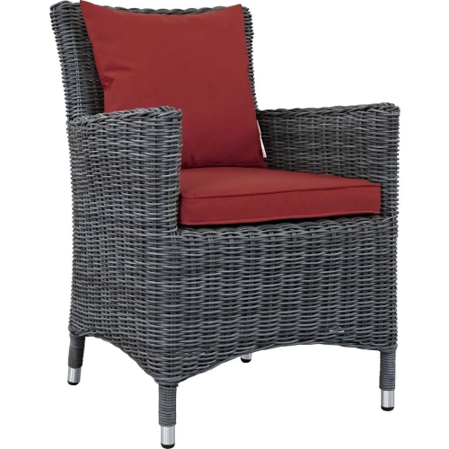 Modway Summon Dining Outdoor Sunbrella ® Armchair in Gray Poly Rattan & Red