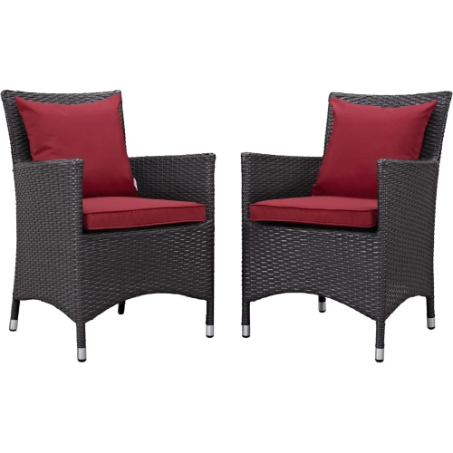 Modway EEI-2188-EXP-RED-SET Convene 2 Outdoor Patio Dining Armchair Set Espresso Red Cushions