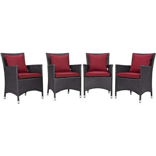 Modway EEI-2190-EXP-RED-SET Convene 4 Outdoor Patio Dining Armchair Set Espresso Red Cushions