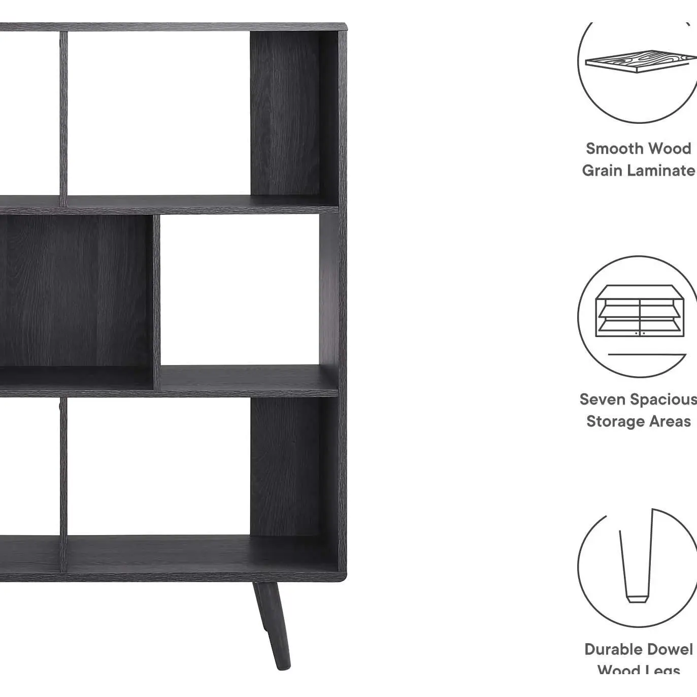 Modway Transmit 7 Shelf Bookcase in Charcoal Gray Wood Grain Finish