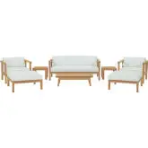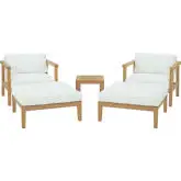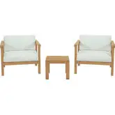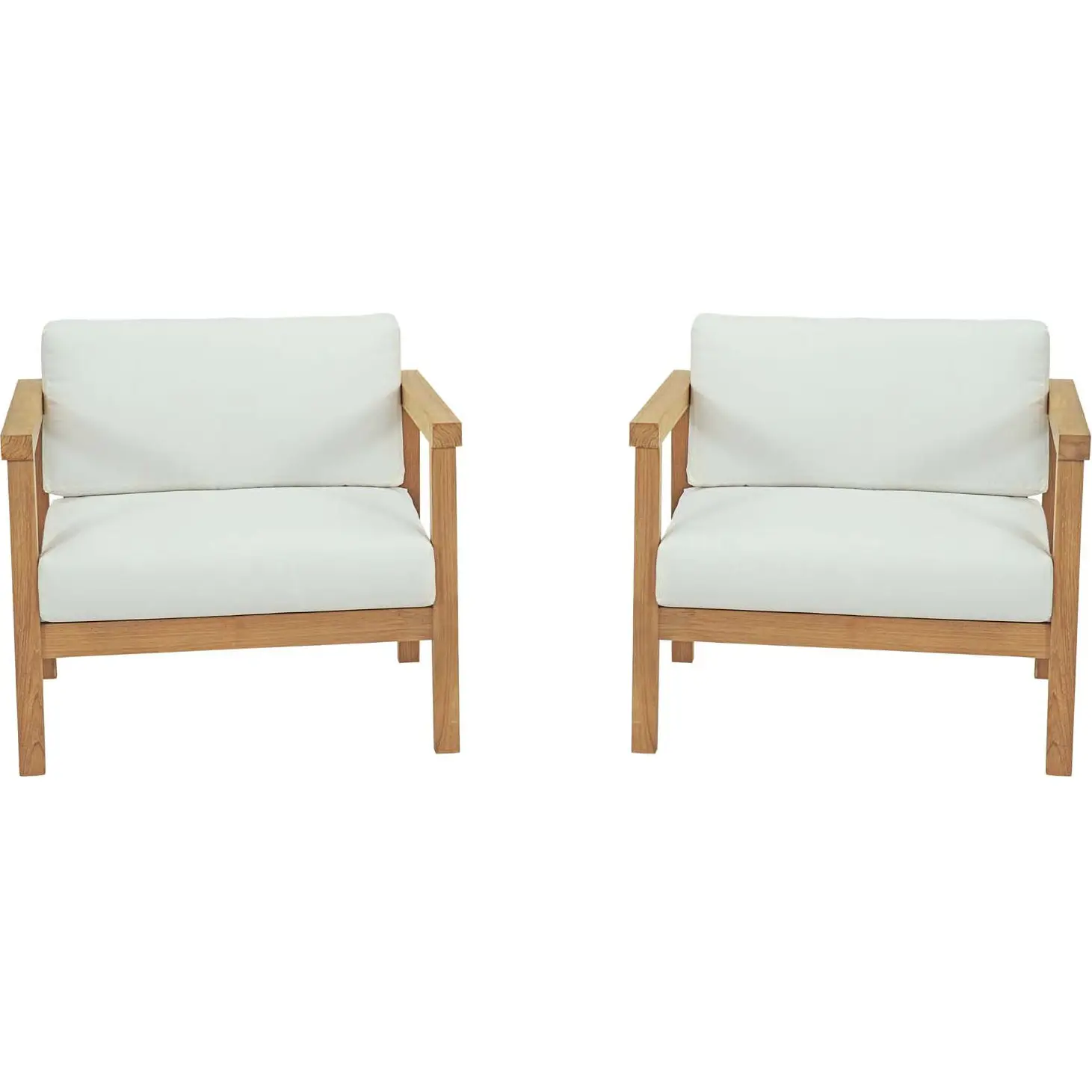 Modway EEI-3108-NAT-WHI-SET Bayport 2 Piece Outdoor Arm Chair Set Teak White Fabric