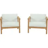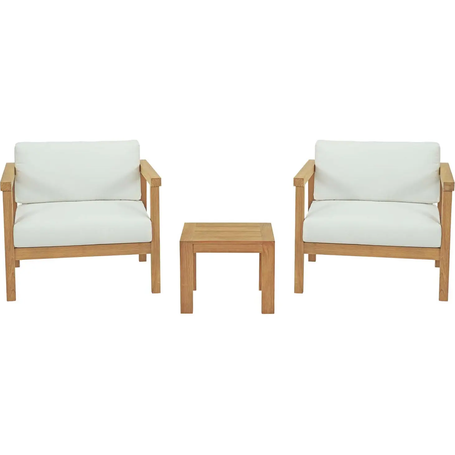 Modway EEI-3112-NAT-WHI-SET Bayport 3 Piece Outdoor Arm Chair Set Teak White Fabric
