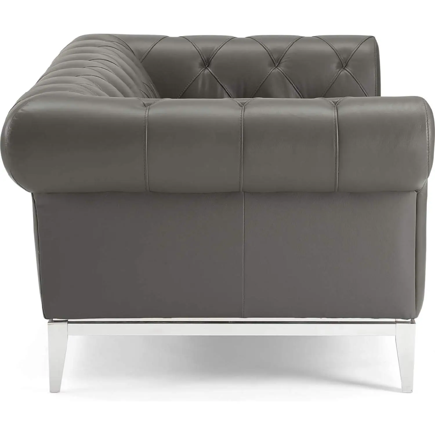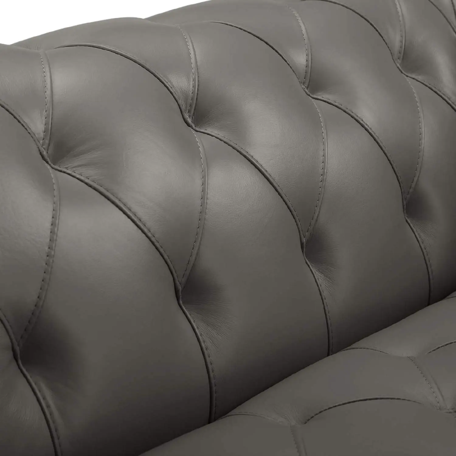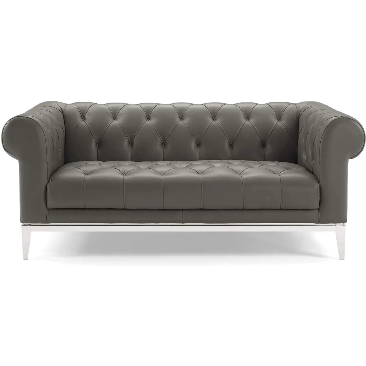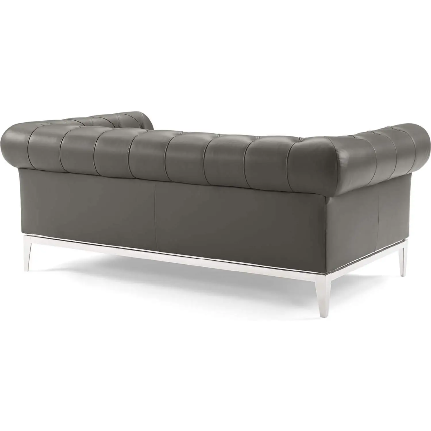 Modway Idyll Chesterfield Loveseat in Tufted Gray Leather & Stainless