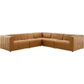 Modway Bartlett 6 Piece Sectional Sofa in Channel Tufted Tan Vegan Leather