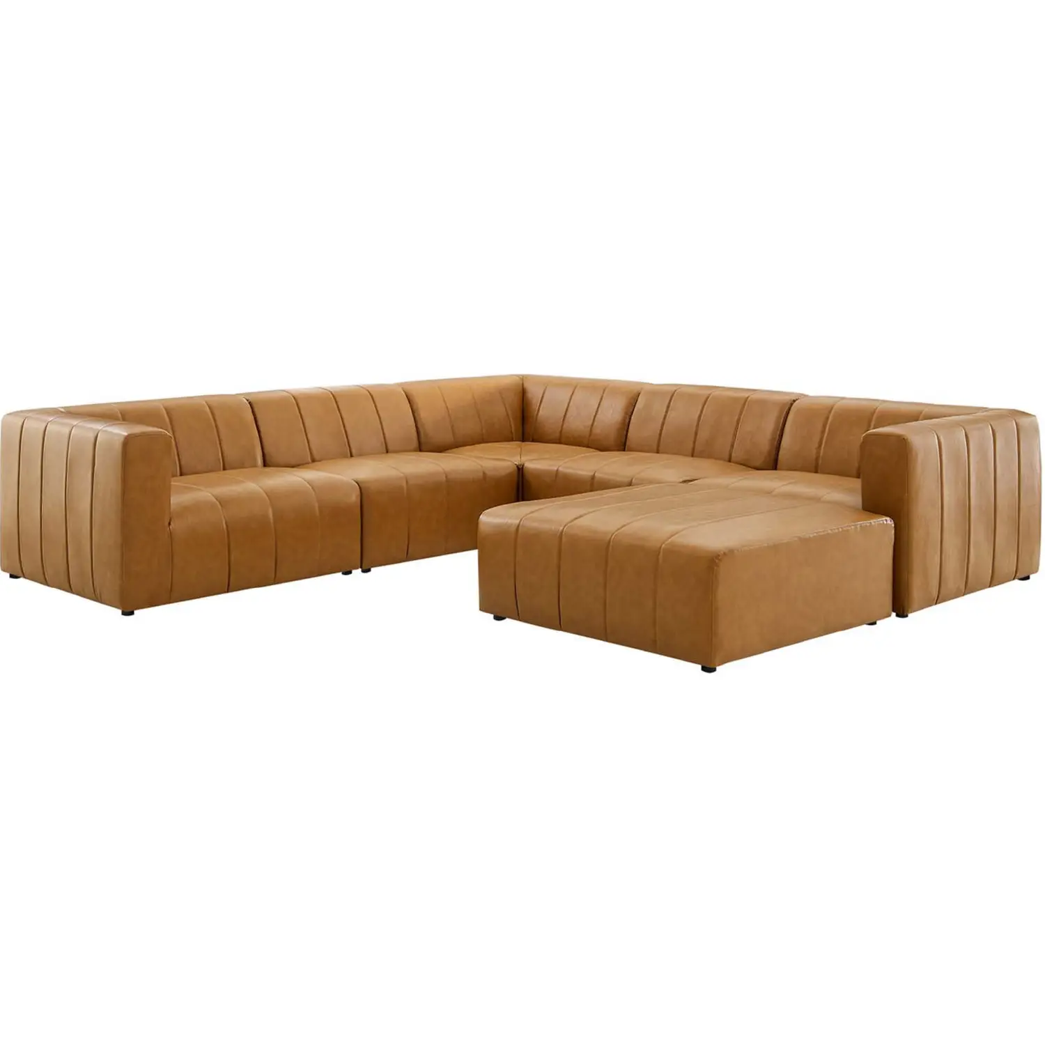 Modway EEI-4534-TAN Bartlett 6 Piece Sectional Sofa Channel Tufted Tan Vegan Leather