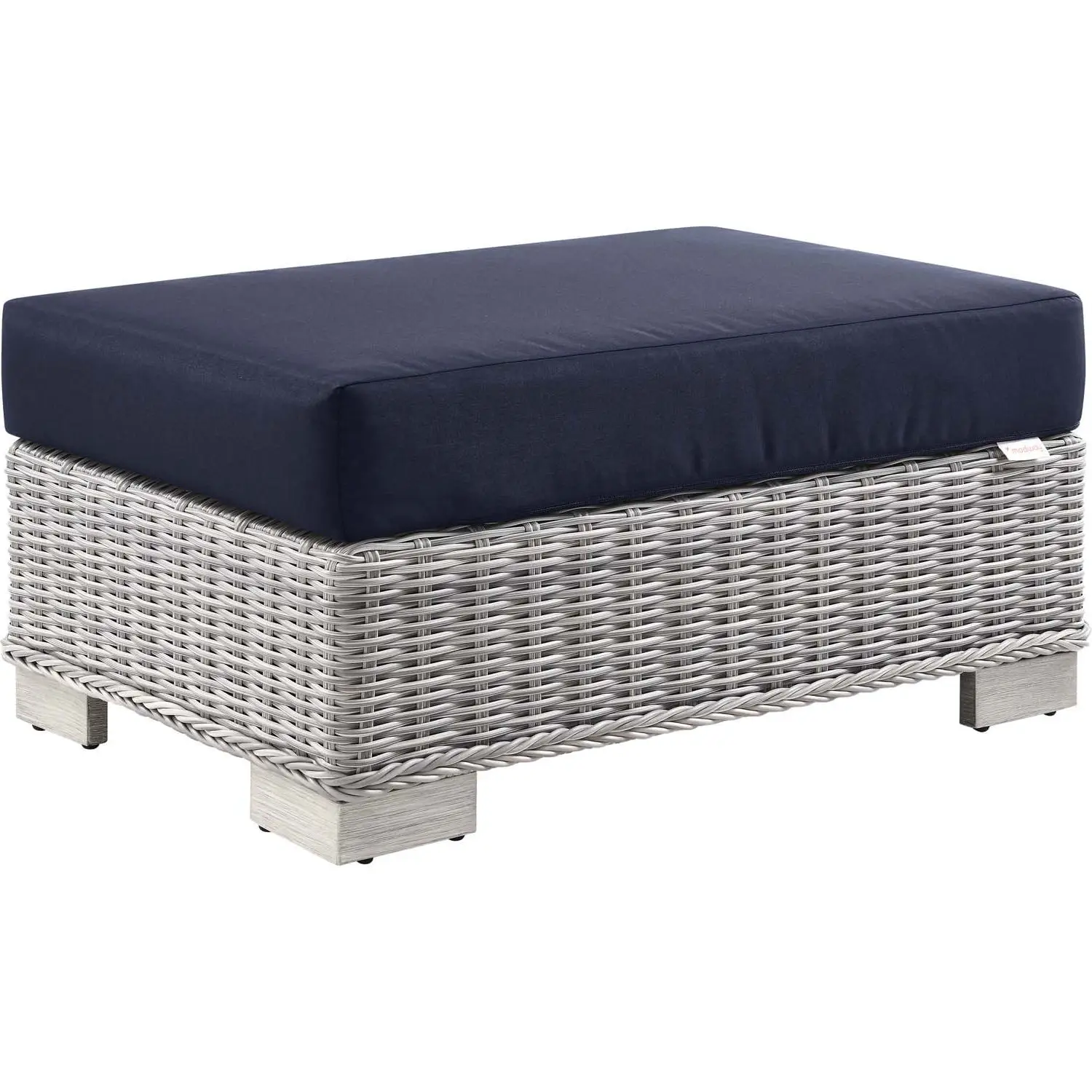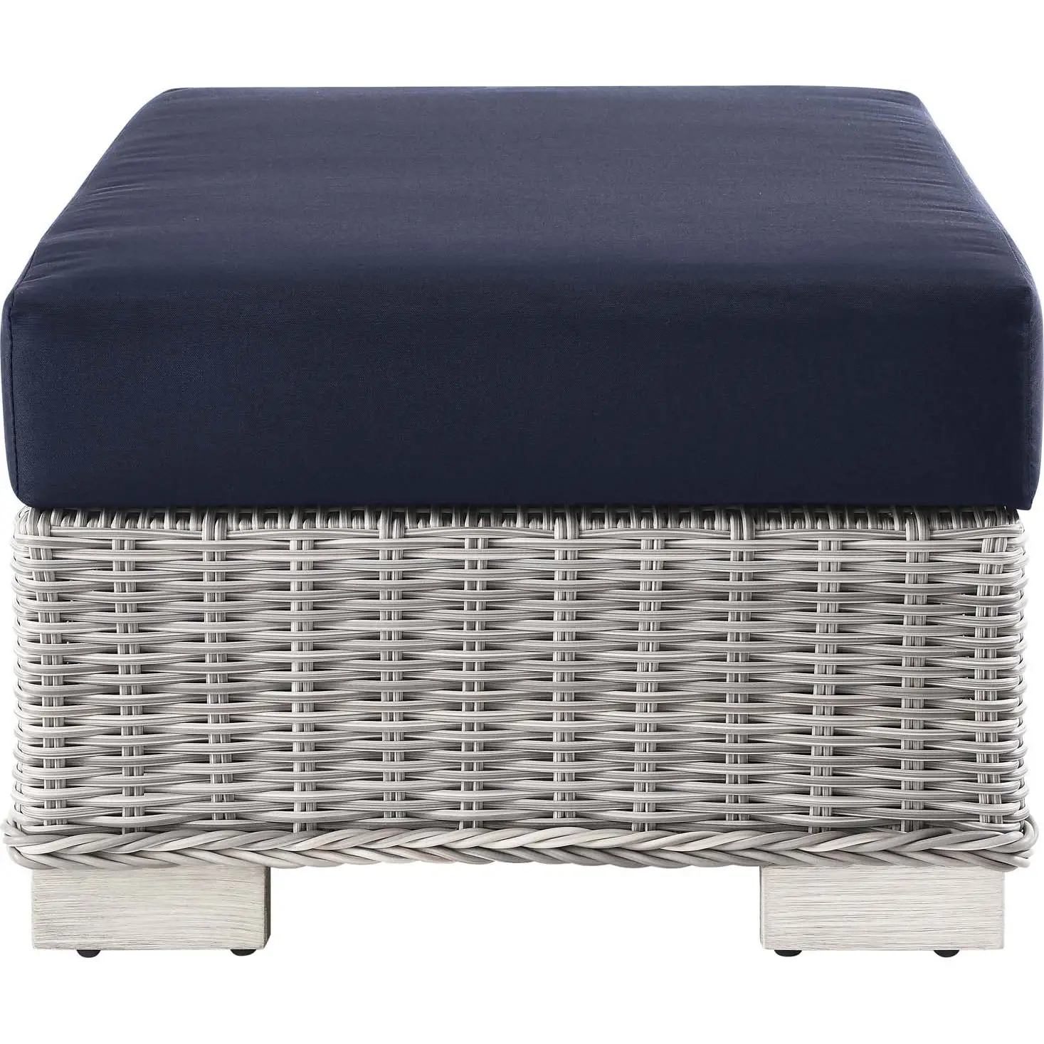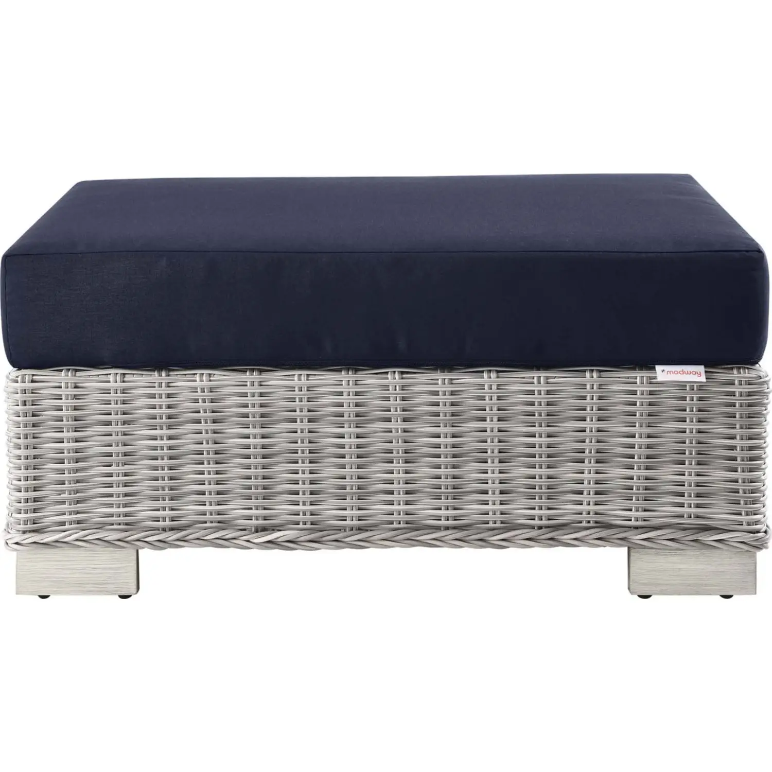 Modway EEI-4839-LGR-NAV Conway Outdoor Ottoman Navy Bue Fabric Gray Wicker Rattan