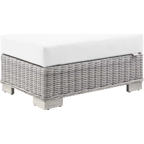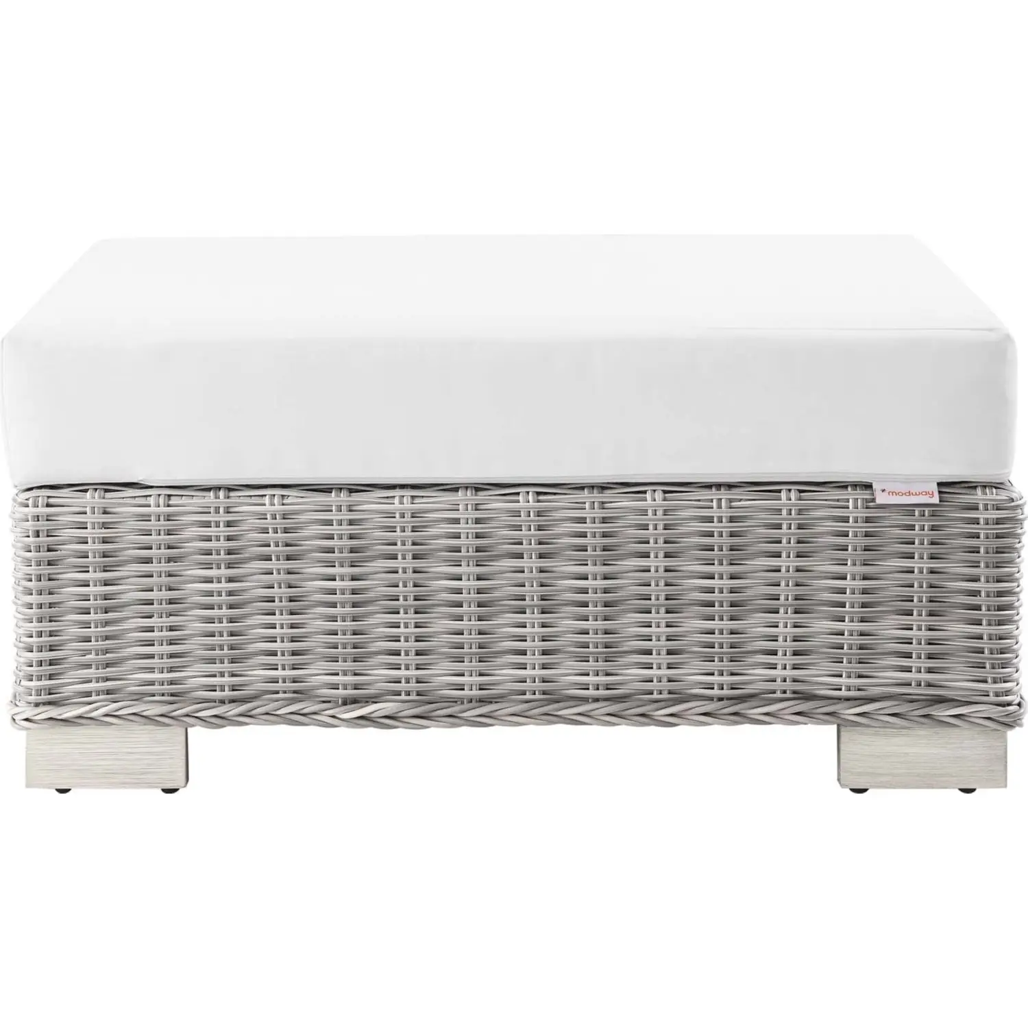 Modway EEI-4839-LGR-WHI Conway Outdoor Ottoman White Fabric Gray Wicker Rattan