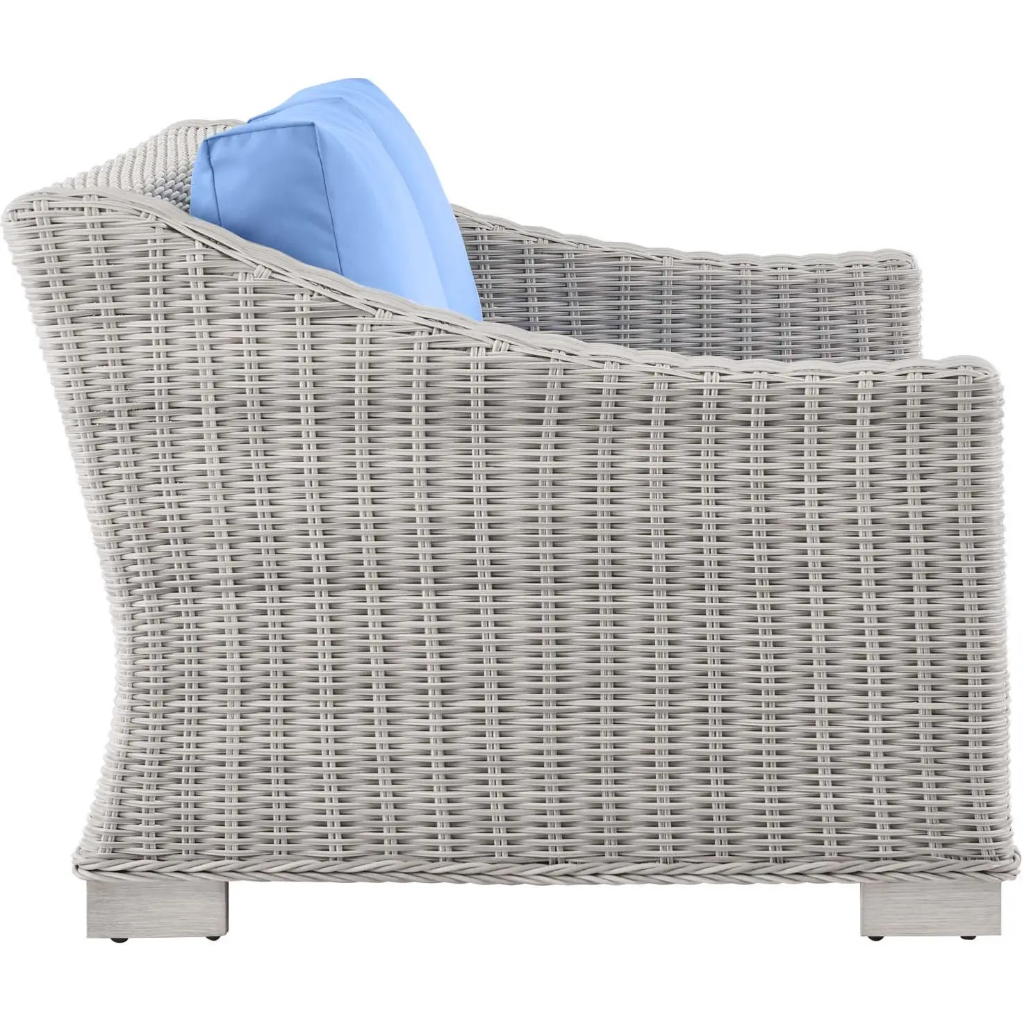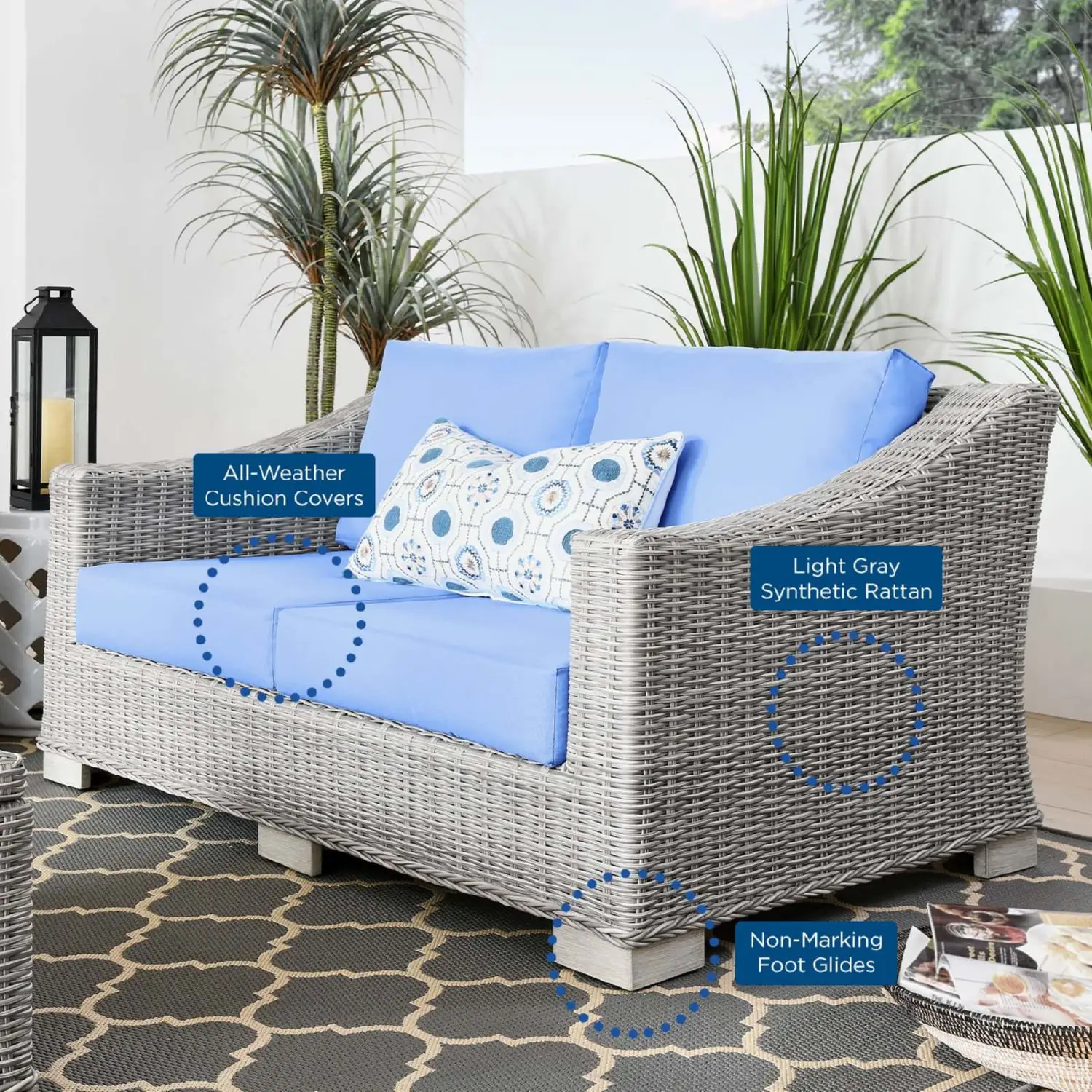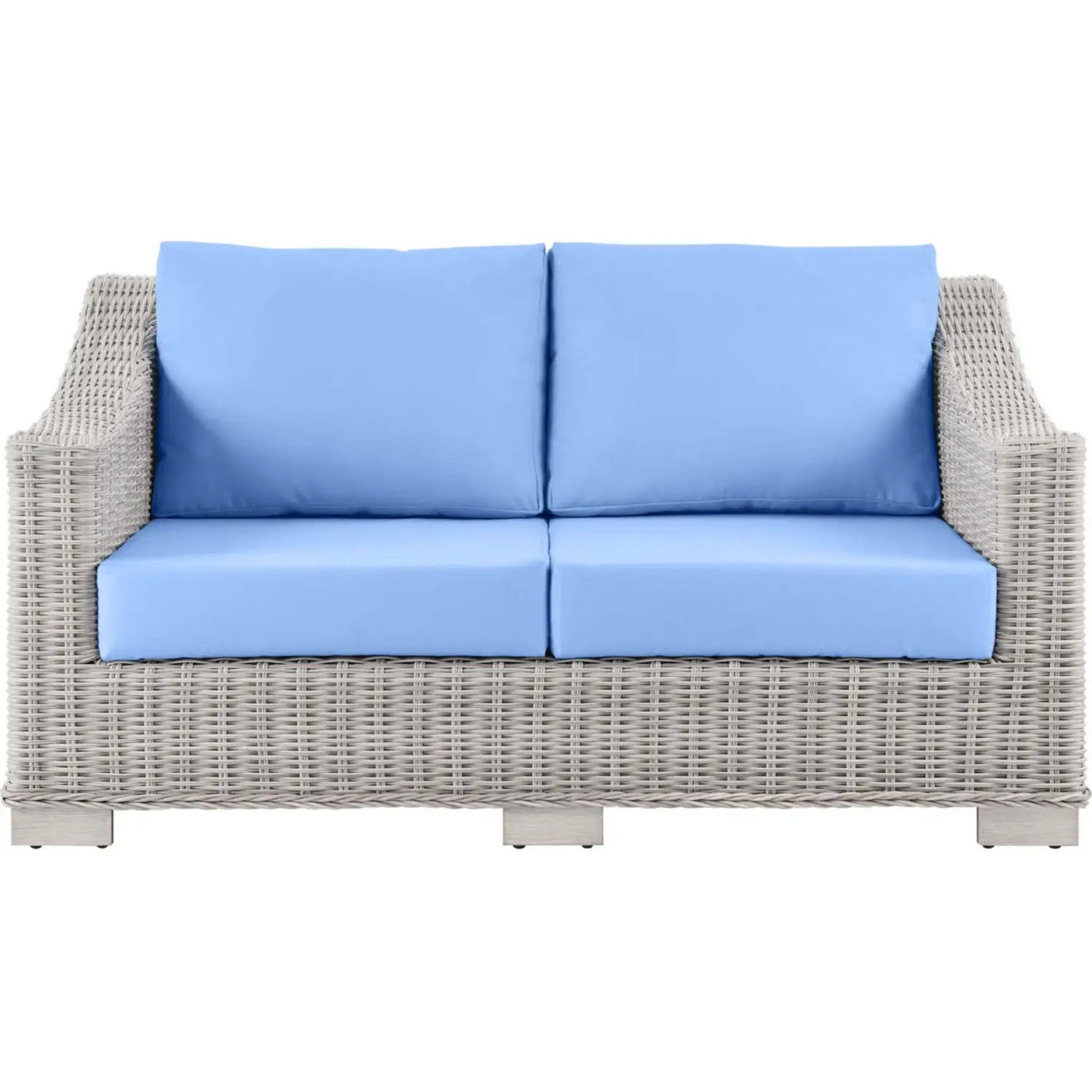 Modway EEI-4841-LGR-LBU Conway Outdoor Loveseat Light Bue Fabric Gray Wicker Rattan