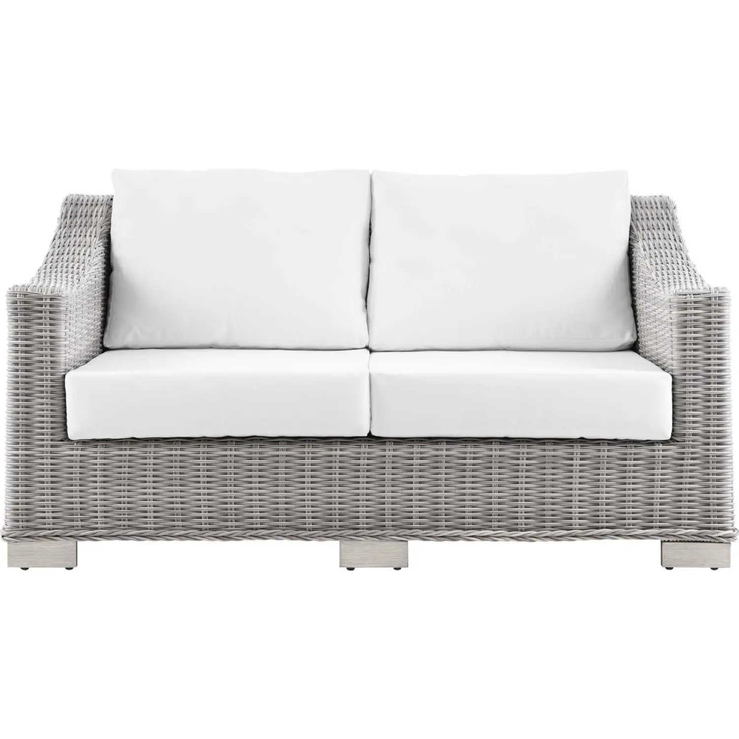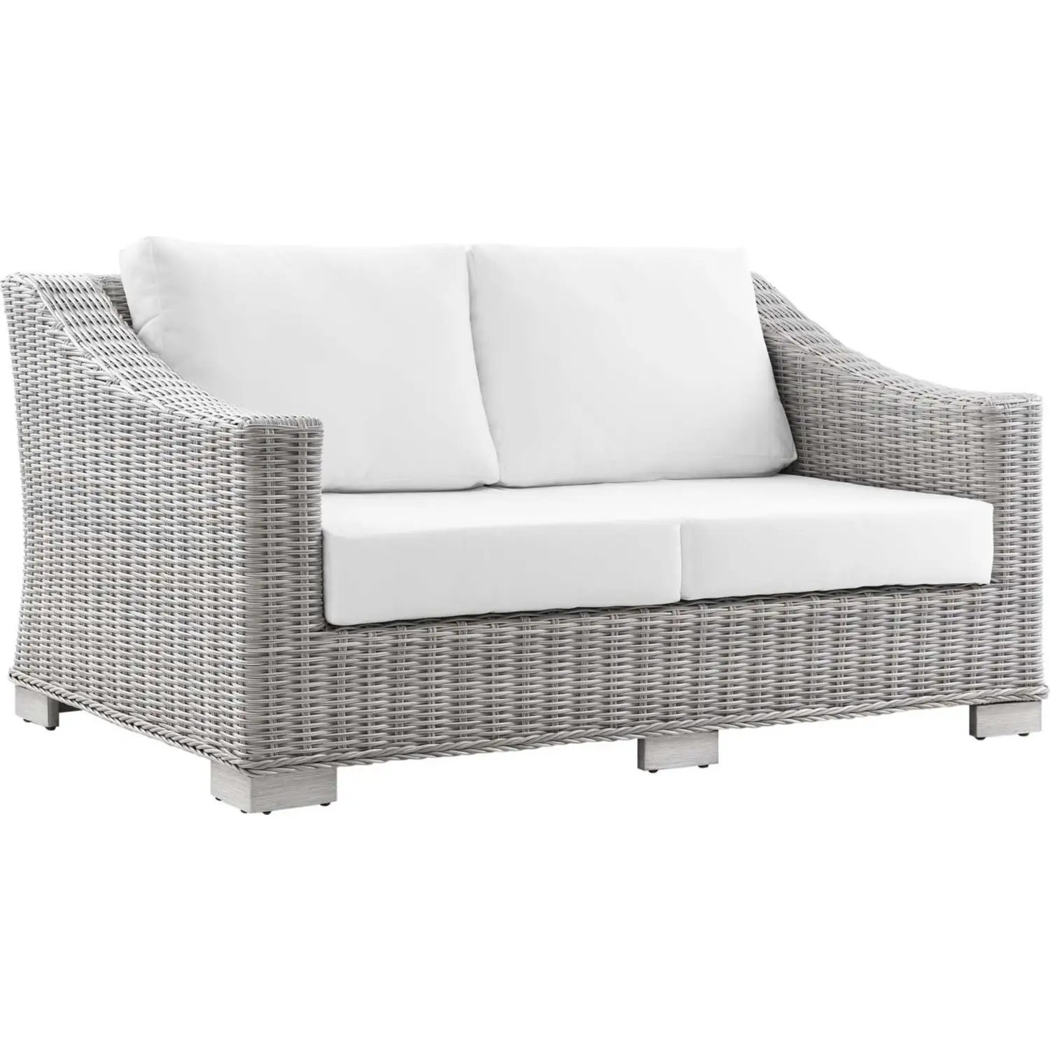 Modway EEI-4841-LGR-WHI Conway Outdoor Loveseat White Fabric Gray Wicker Rattan