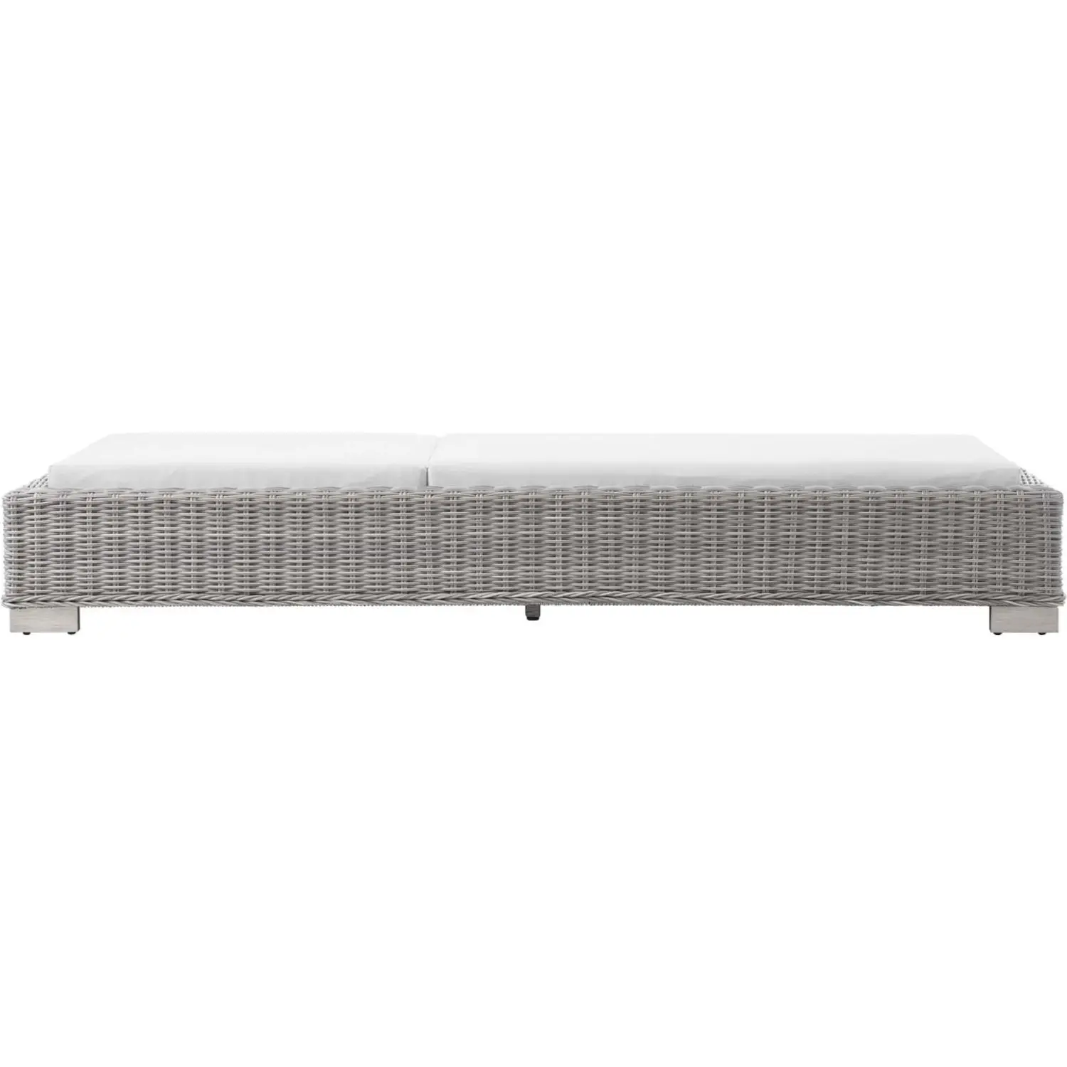 Modway Conway Outdoor Chaise in White Fabric & Gray Wicker Rattan