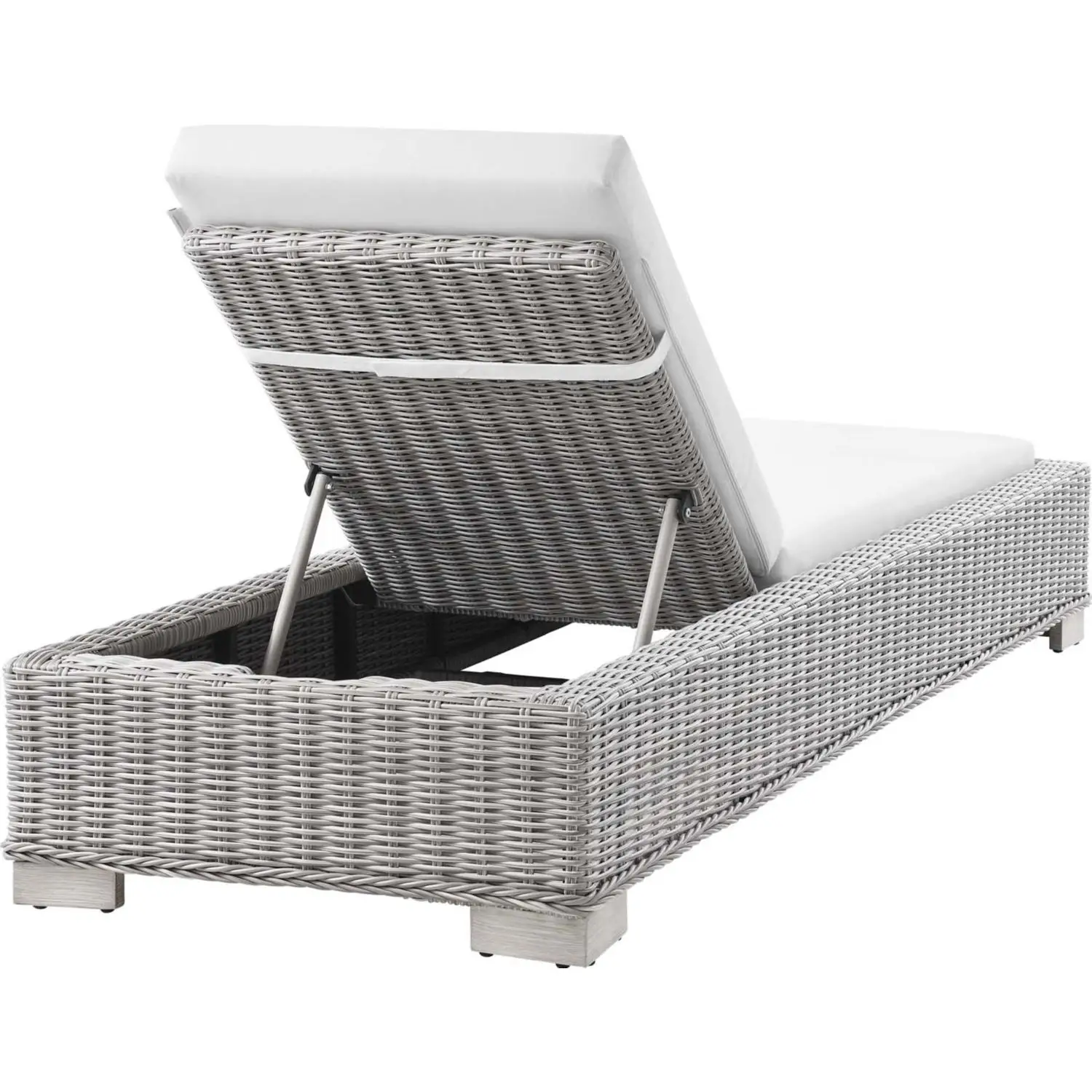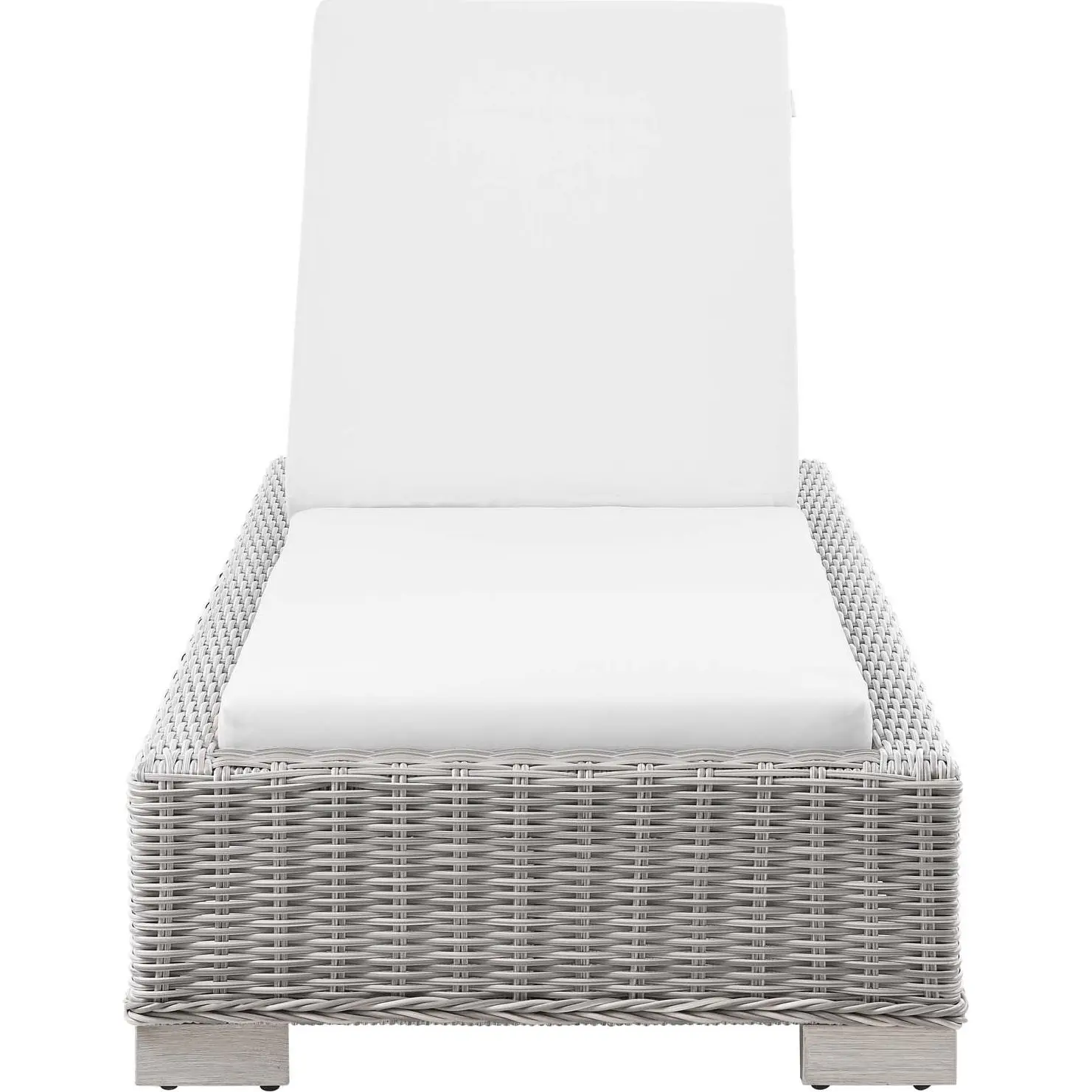 Modway EEI-4843-LGR-WHI Conway Outdoor Chaise White Fabric Gray Wicker Rattan