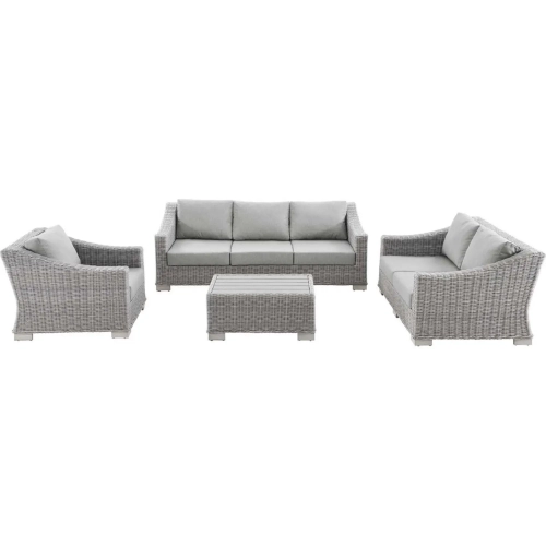 Modway EEI-5091-GRY Conway Outdoor 4 Piece Sofa Set Light Gray Poly Rattan Gray Fabric