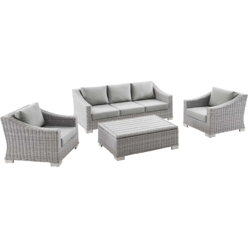 Modway EEI-5095-GRY Conway Outdoor 4 Piece Sofa Set Light Gray Poly Rattan Gray Fabric