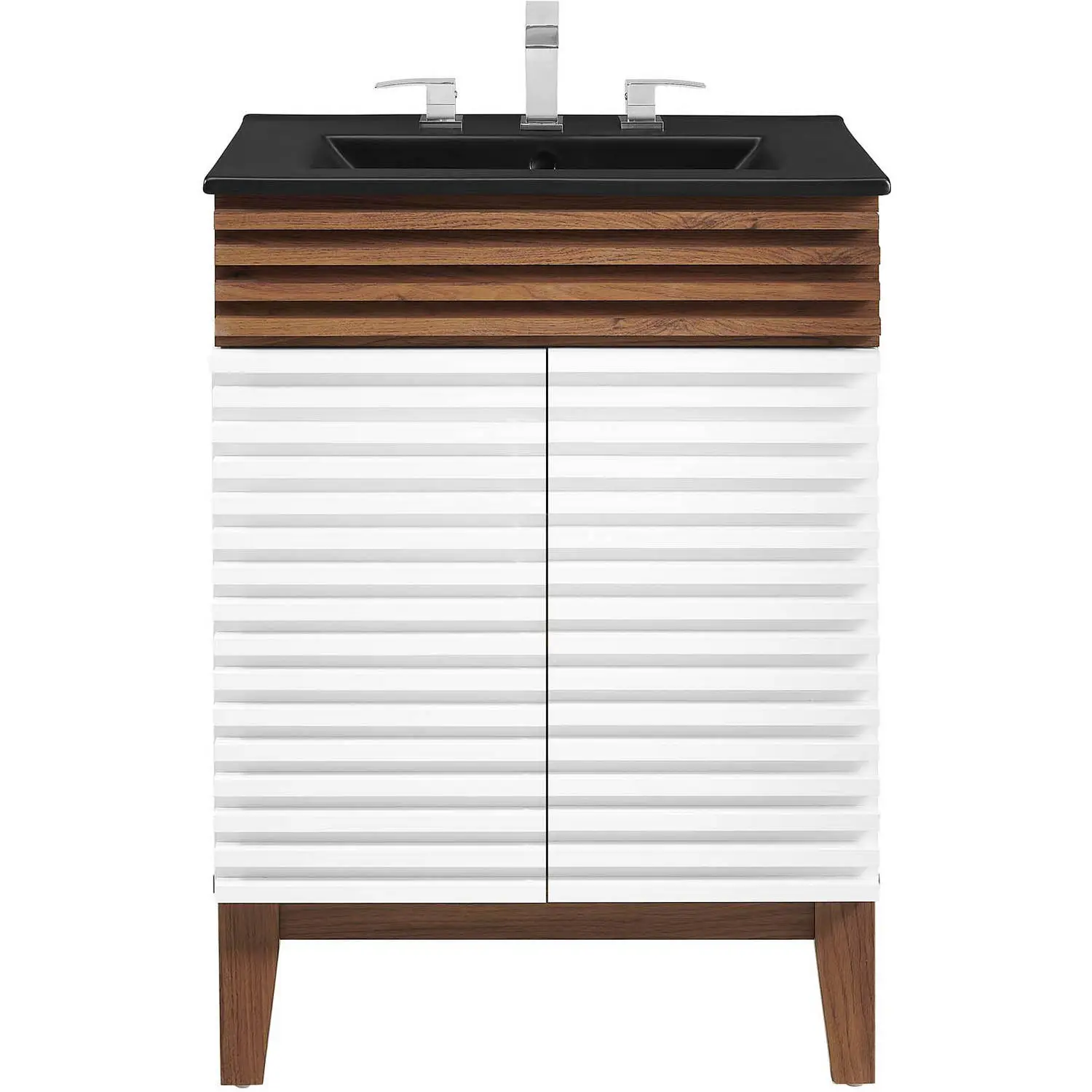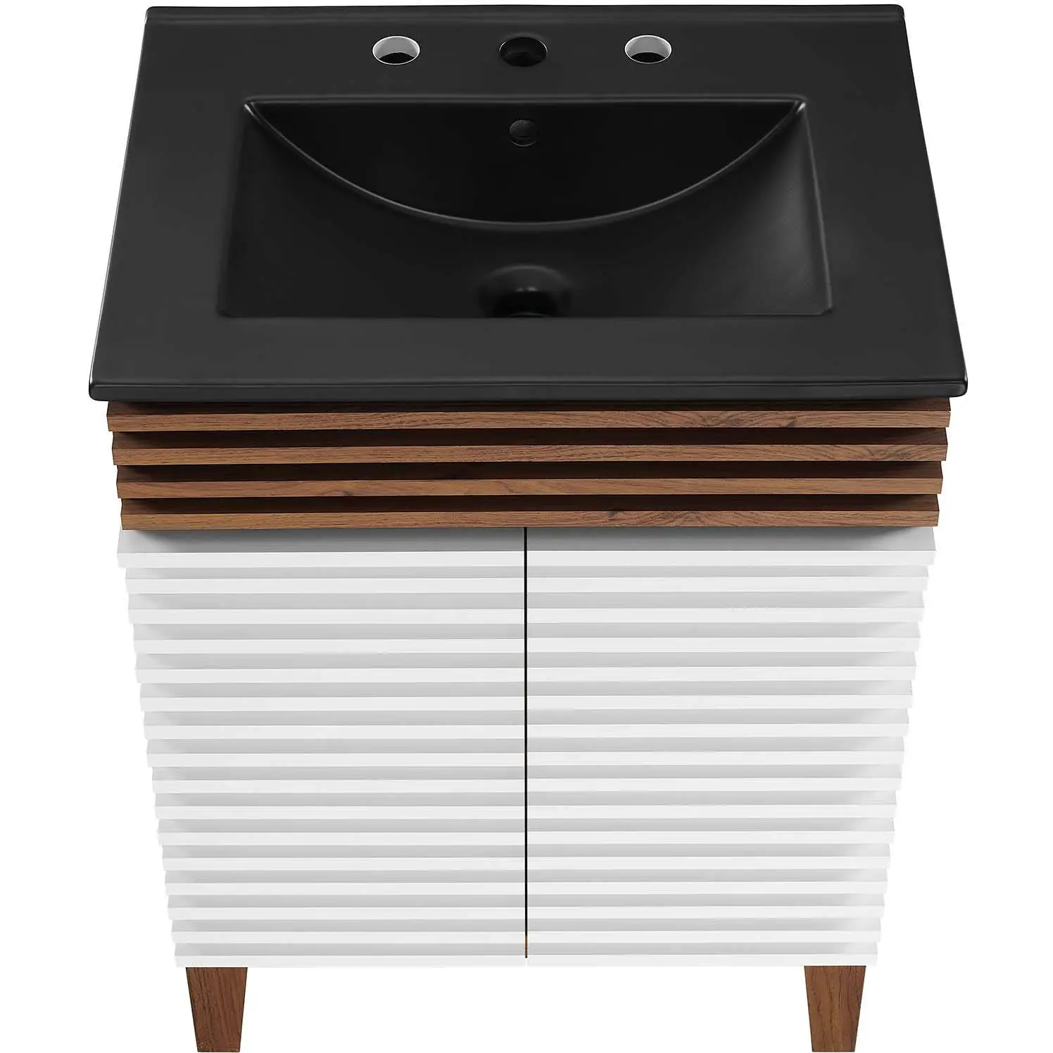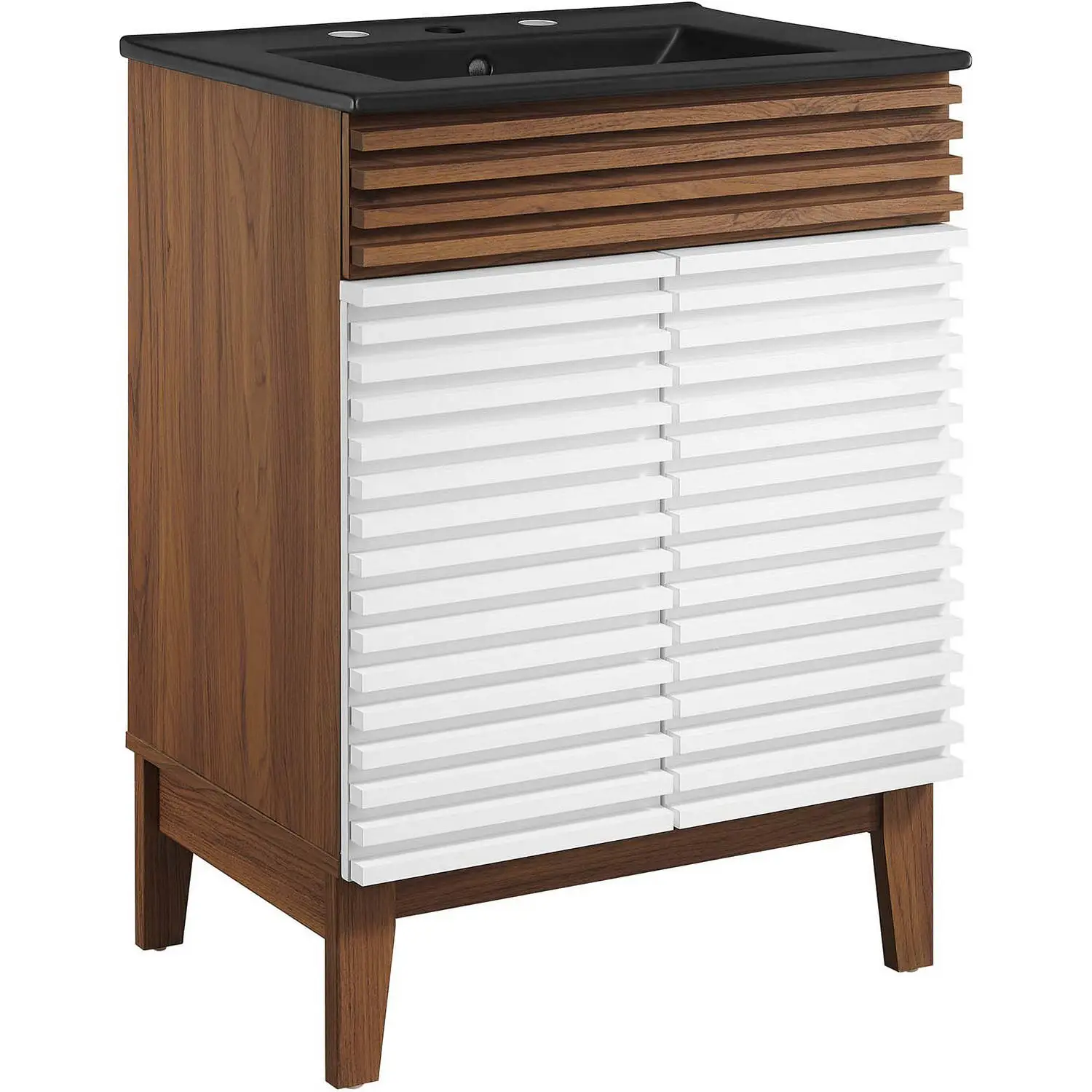 Modway EEI-5350-WHI-WAL-BLK Render 24" Bathroom Vanity White Walnut Finish Black Ceramic