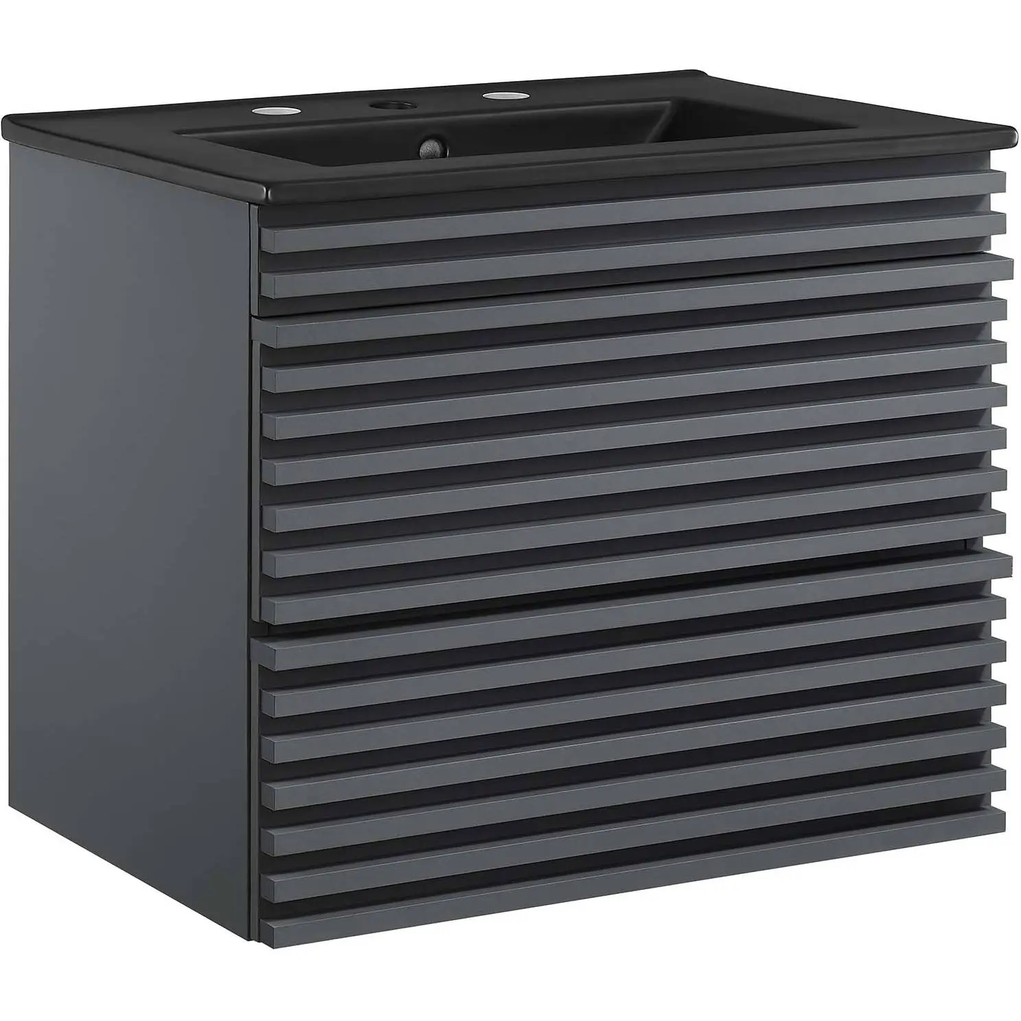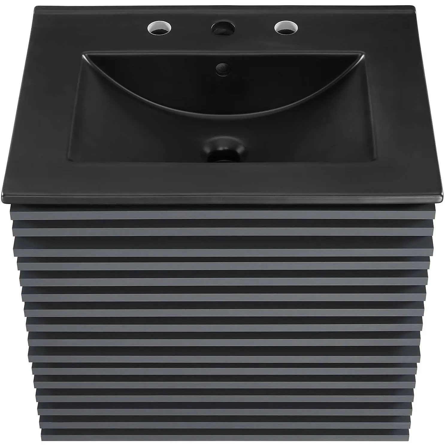 Modway EEI-5364-GRY-BLK Render 24" Bathroom Vanity Gray Finish Black Ceramic