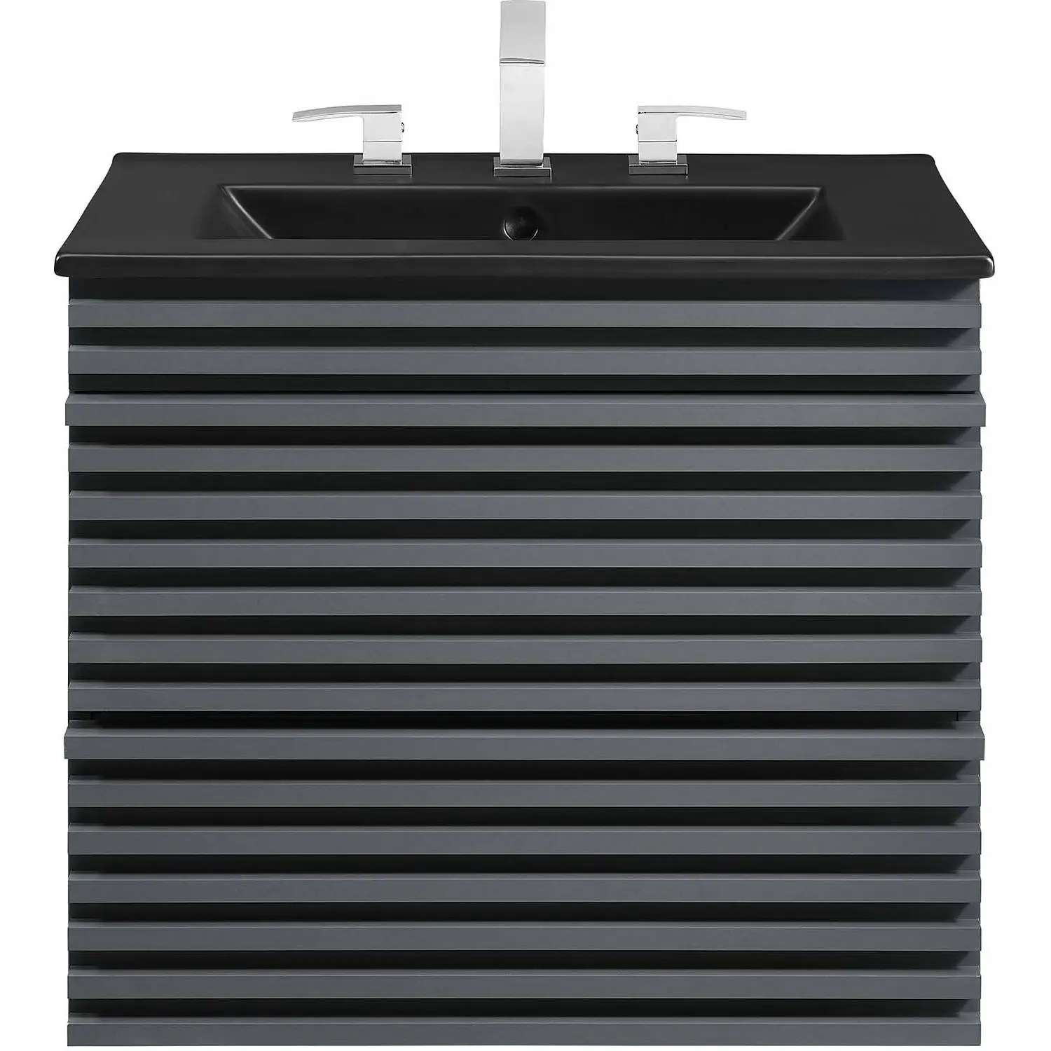 Modway Render 24" Bathroom Vanity in Gray Finish & Black Ceramic