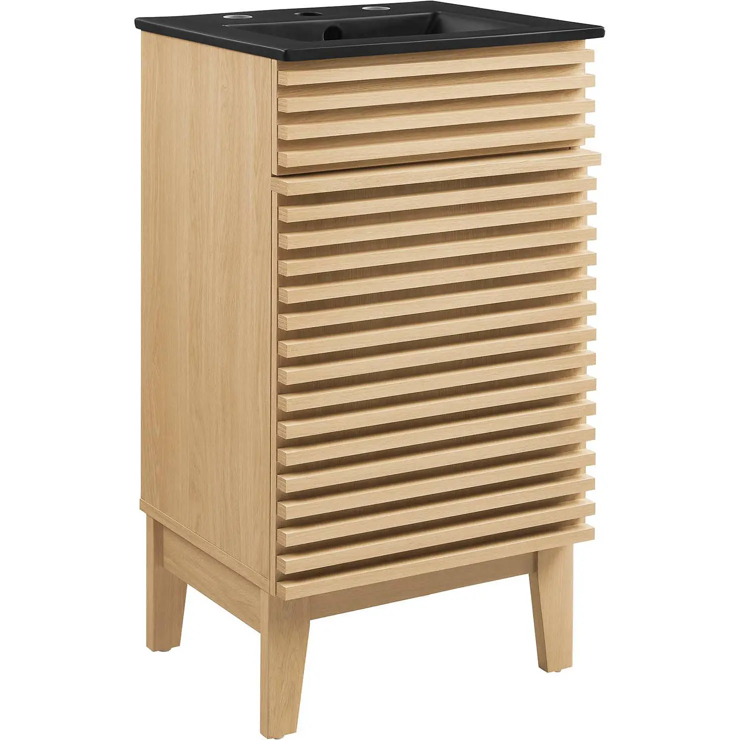 Modway EEI-5391-OAK-BLK Render 18" Bathroom Vanity Oak Finish Black Ceramic