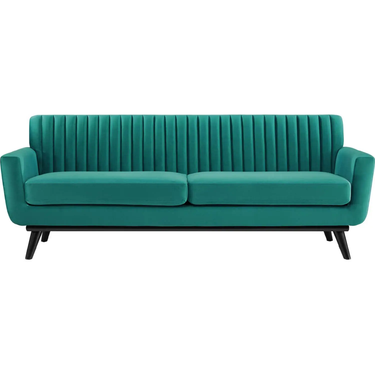 Modway Engage Sofa in Channel Tufted Teal Velvet