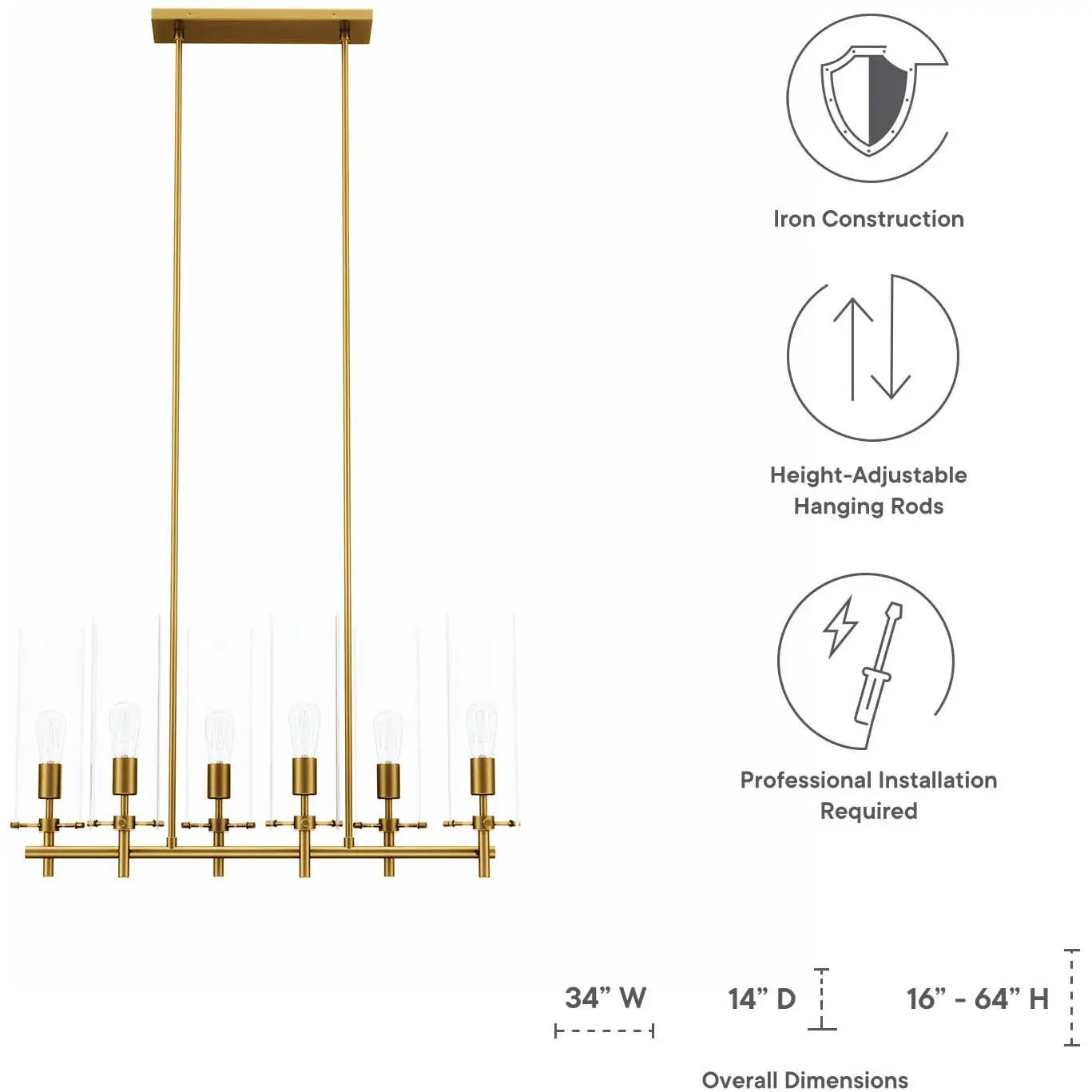 Modway EEI-5651-CLR-SBR Skylark 6 Light Chandelier Satin Brass Iron Clear Glass