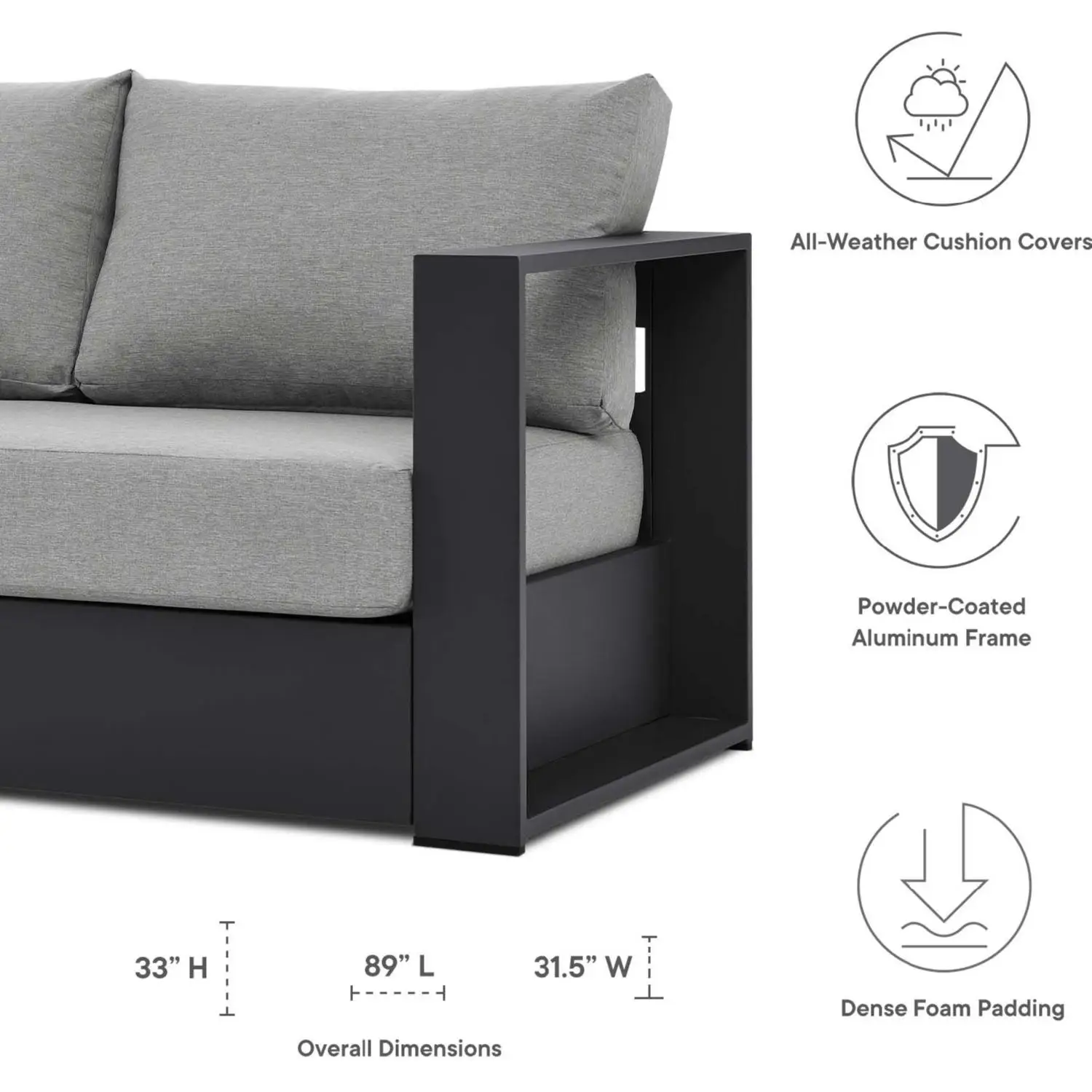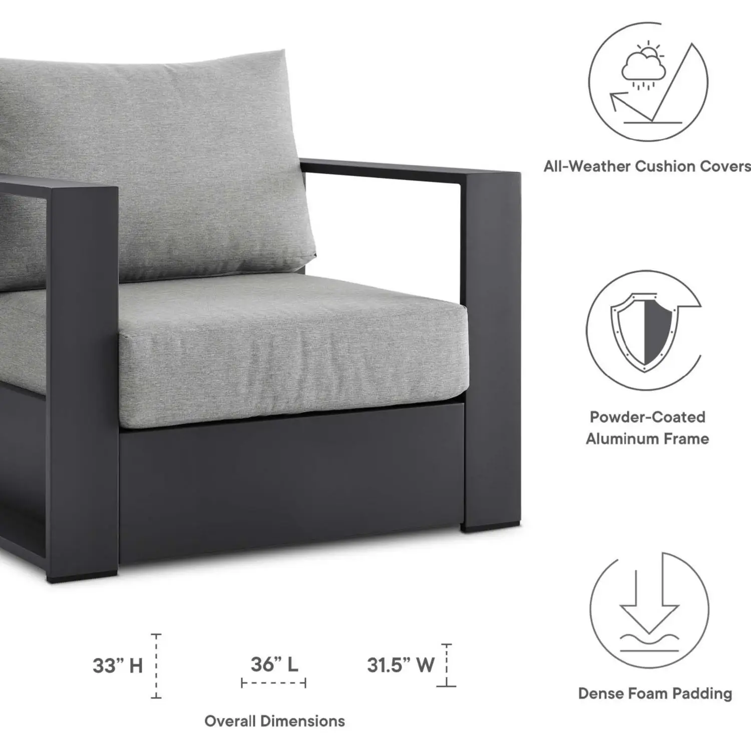 Modway EEI-5748-GRY-GRY Tahoe Outdoor 3 Piece Sofa Set Gray Metal Gray Fabric