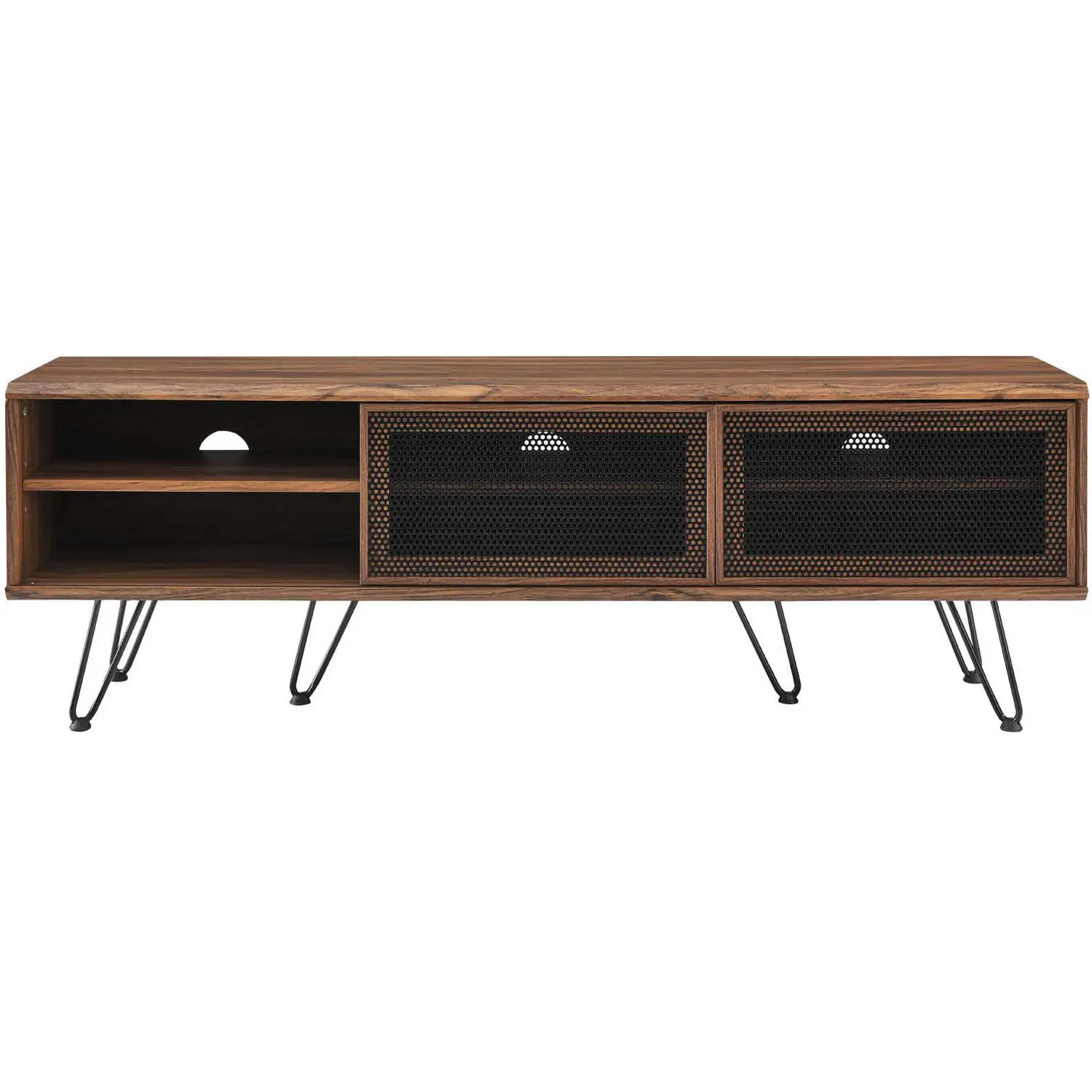 Modway EEI-6203-WAL Nomad 59" TV Stand Walnut Finish Black Metal Mesh