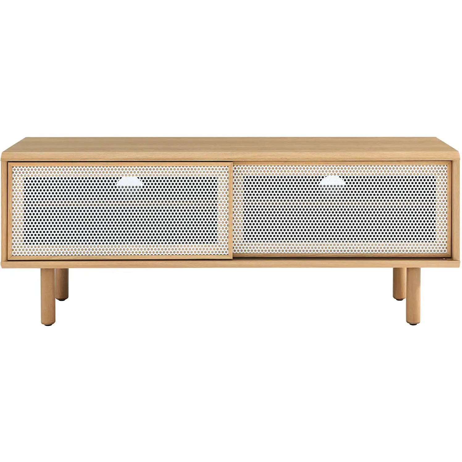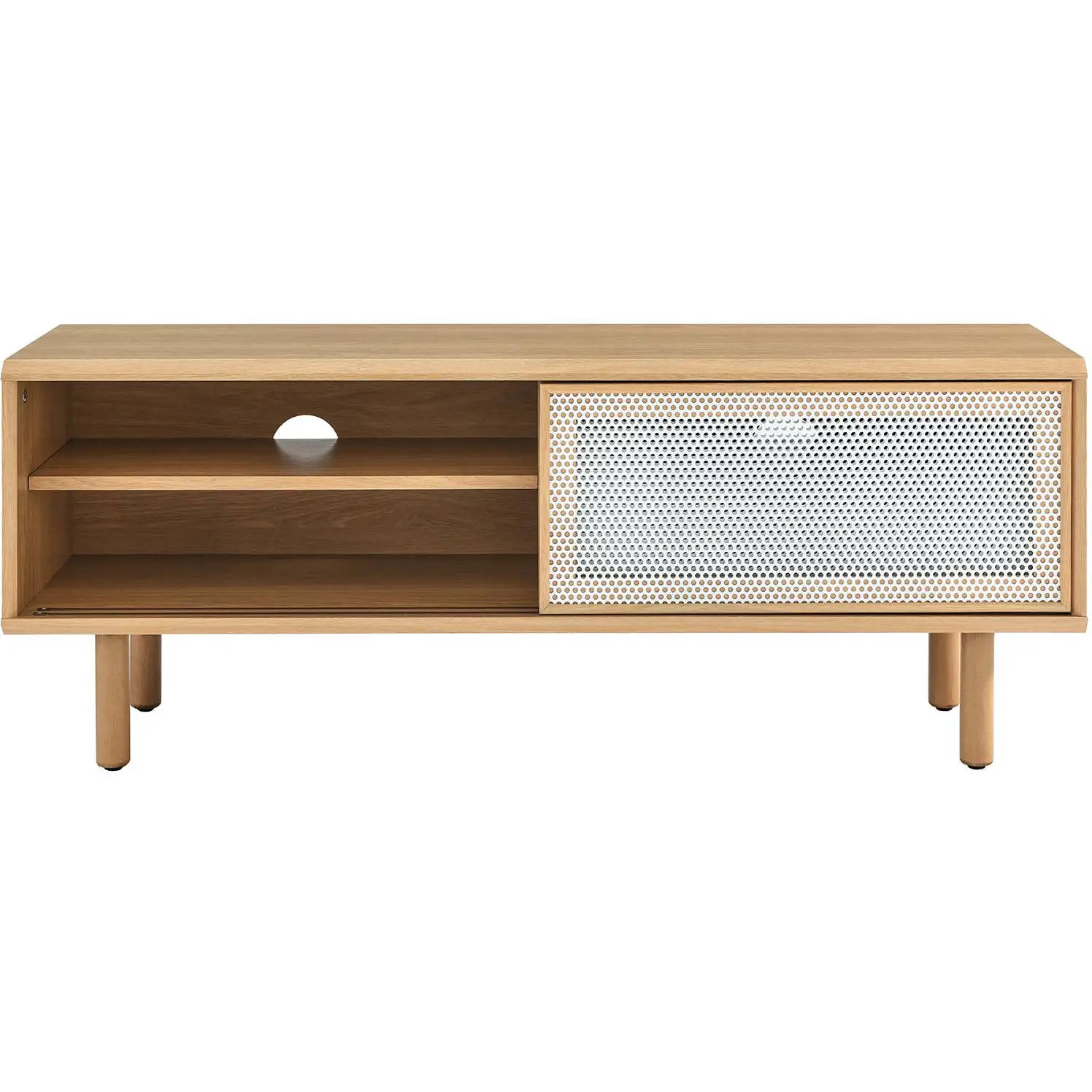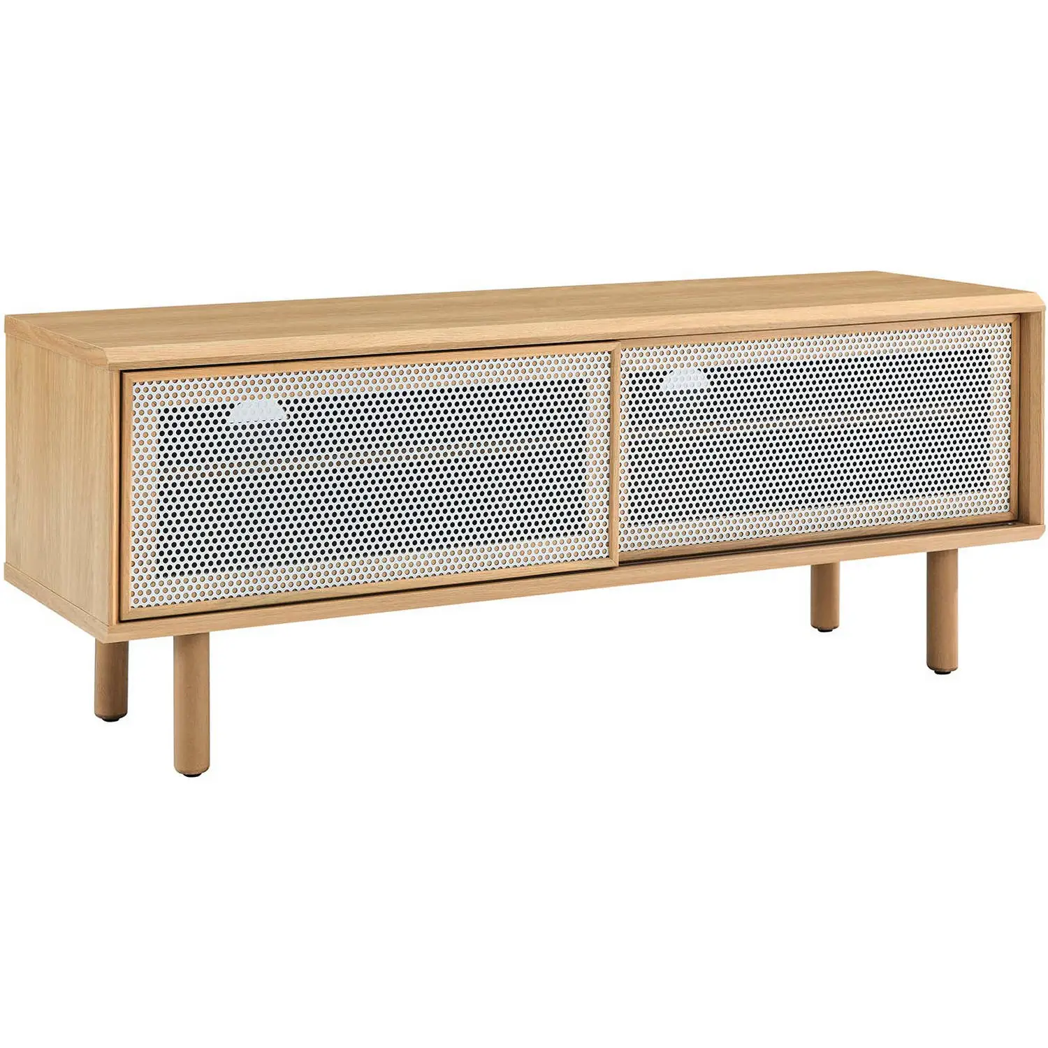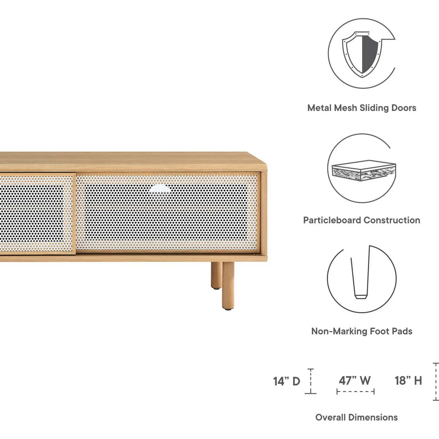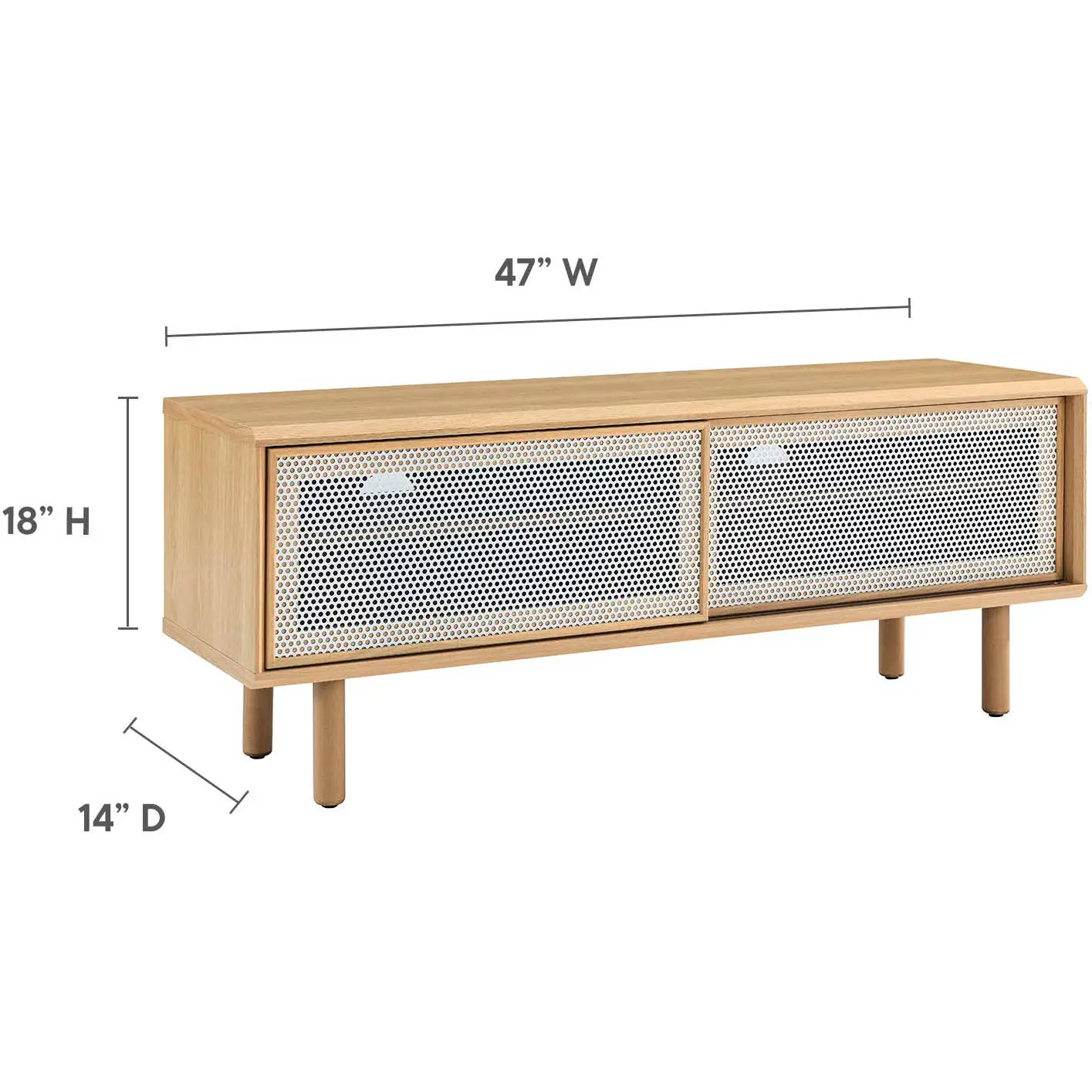 Modway EEI-6233-OAK Kurtis 47" TV Stand Oak Finish White Metal Mesh