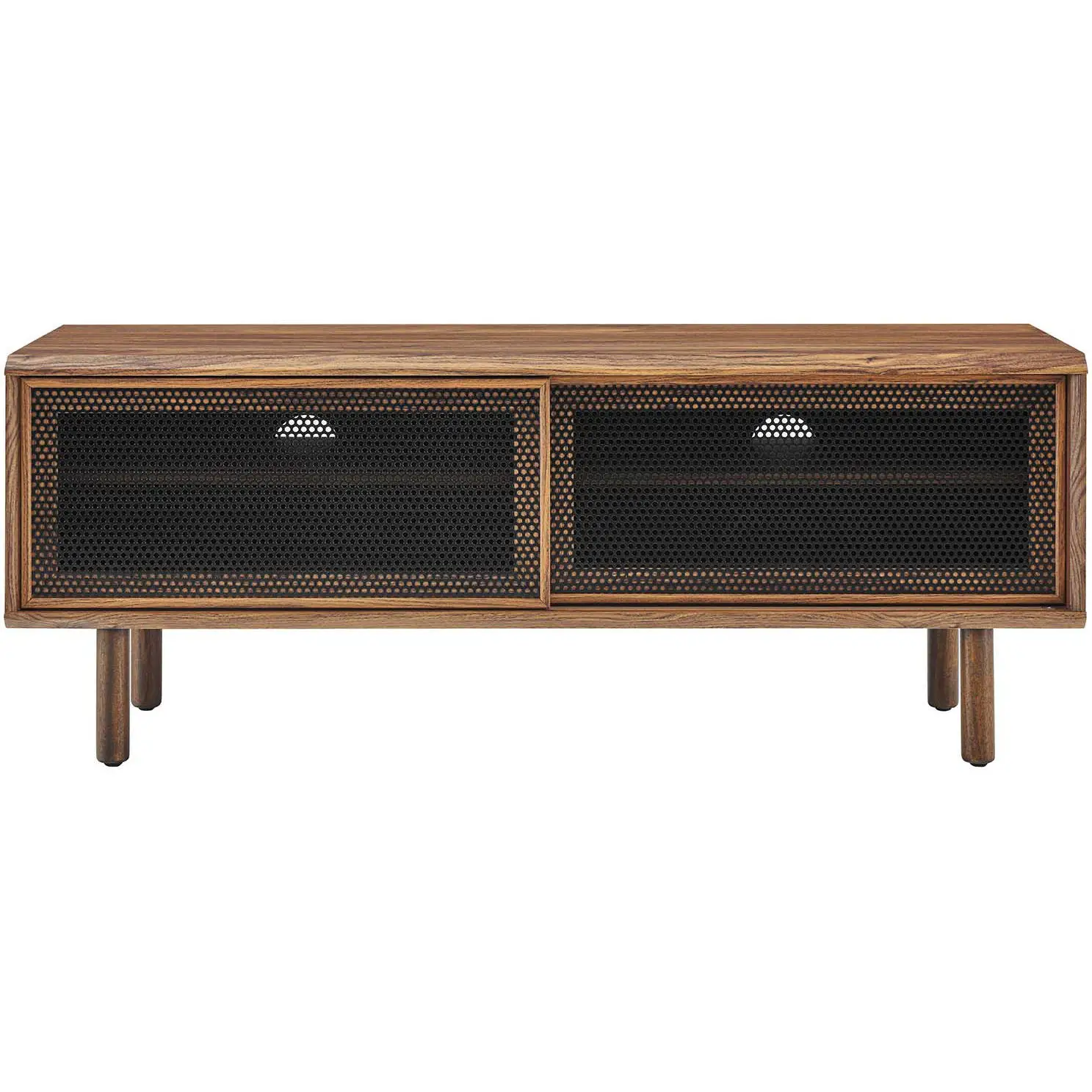 Modway EEI-6233-WAL Kurtis 47" TV Stand Walnut Finish Black Metal Mesh