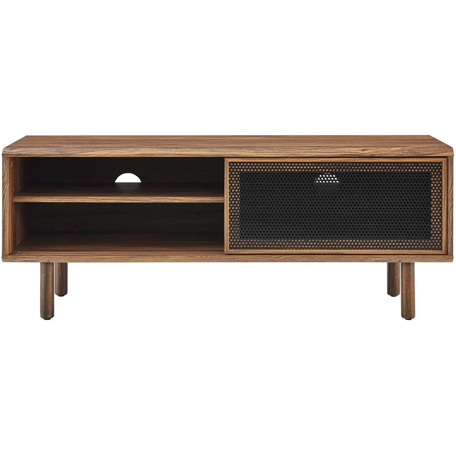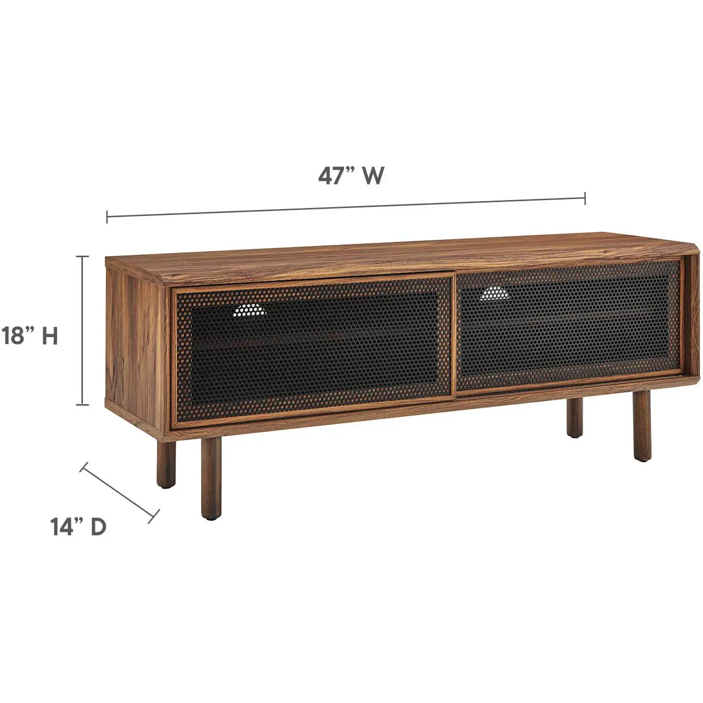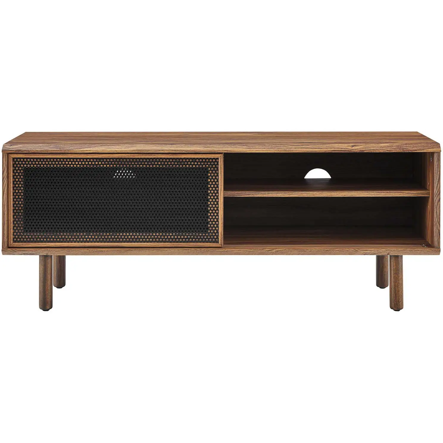 Modway Kurtis 47" TV Stand in Walnut Finish & Black Metal Mesh