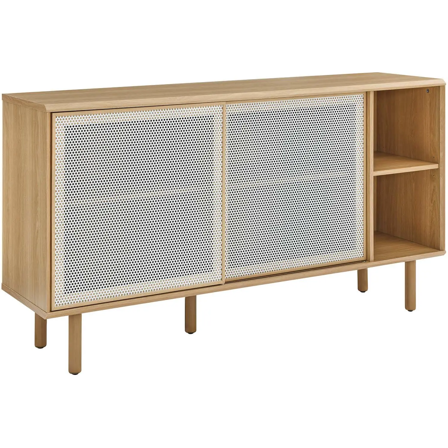 Modway Kurtis 59" Sideboard in Oak Finish & White Metal Mesh