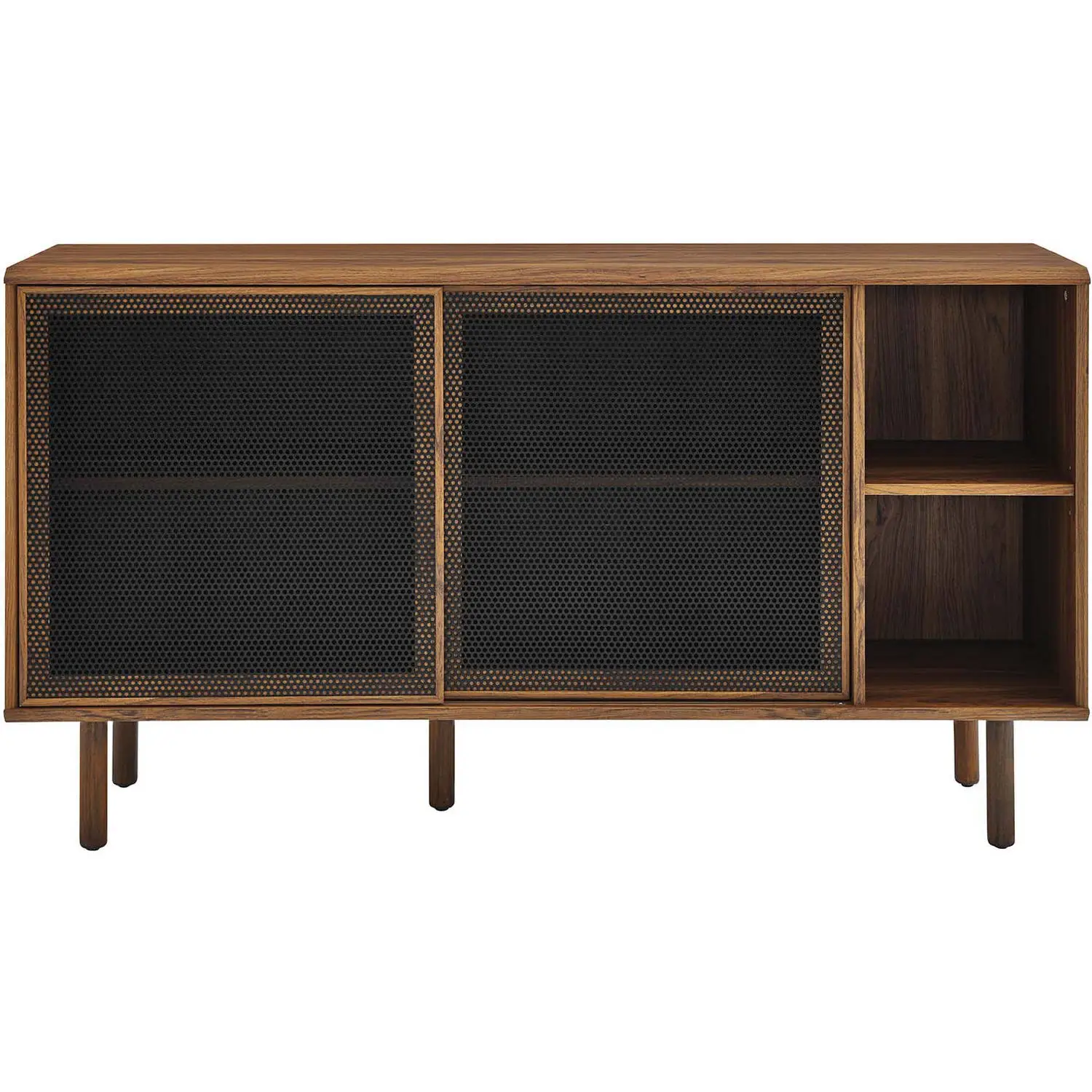 Modway Kurtis 59" Sideboard in Walnut Finish & Black Metal Mesh