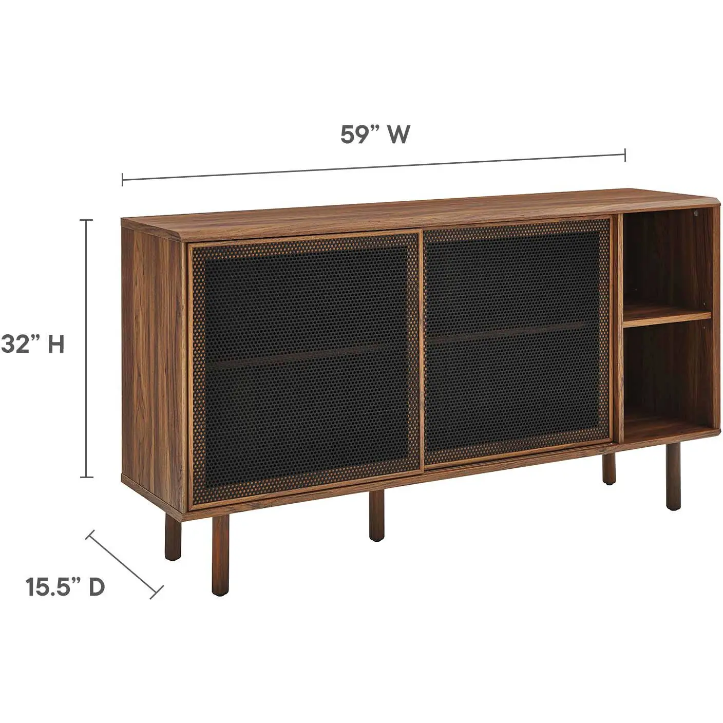 Modway EEI-6235-WAL Kurtis 59" Sideboard Walnut Finish Black Metal Mesh