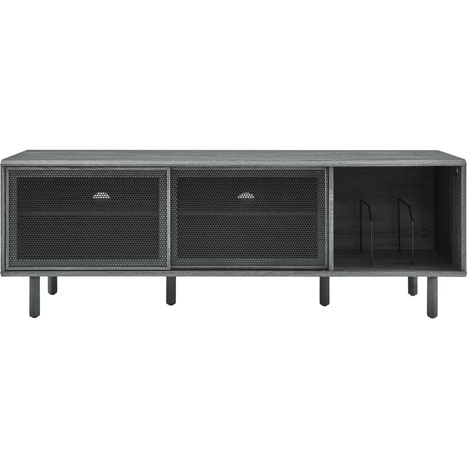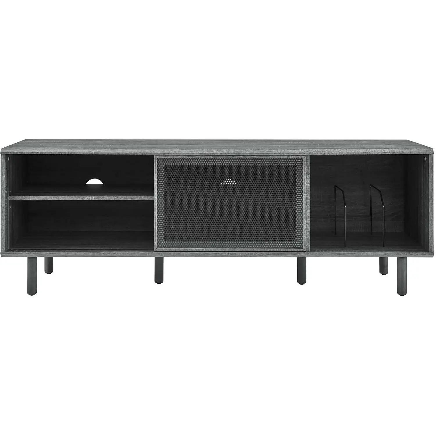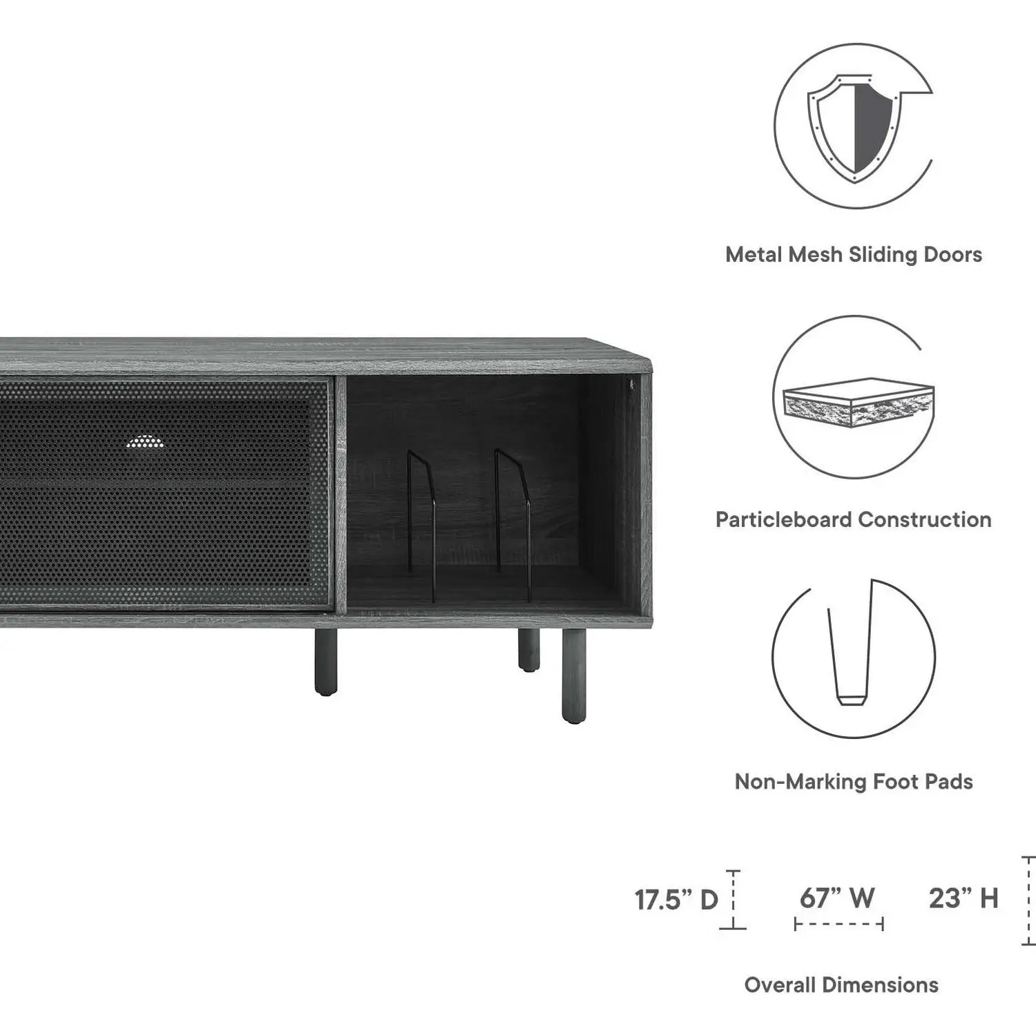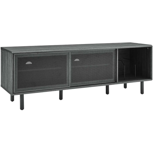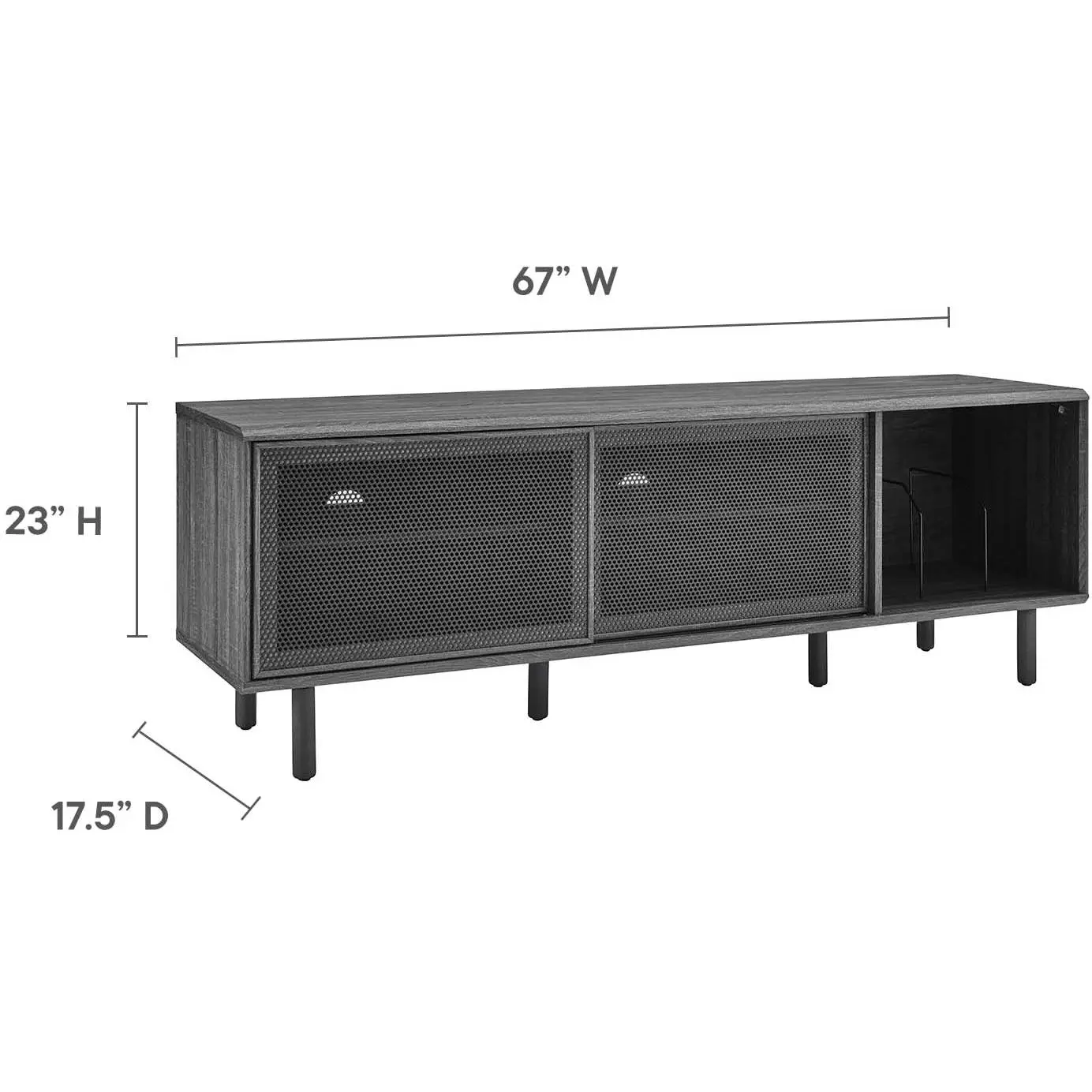 Modway Kurtis 67" TV & Record Stand in Charcoal Gray Finish & Black Metal Mesh