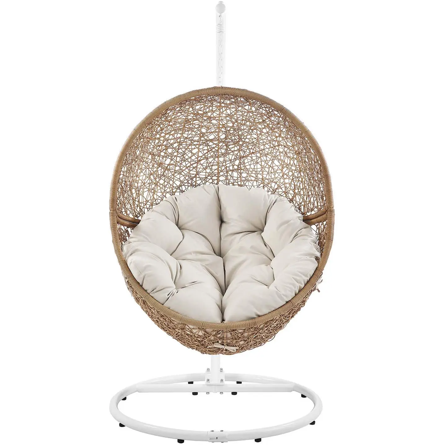 Modway EEI-6262-CAP-BEI Encase Outdoor Swing Chair Cappuccino PE Rattan Beige Fabric