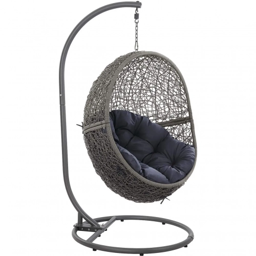 Modway EEI-6262-GRY-NAV Encase Outdoor Swing Chair Gray PE Rattan Navy Blue Fabric