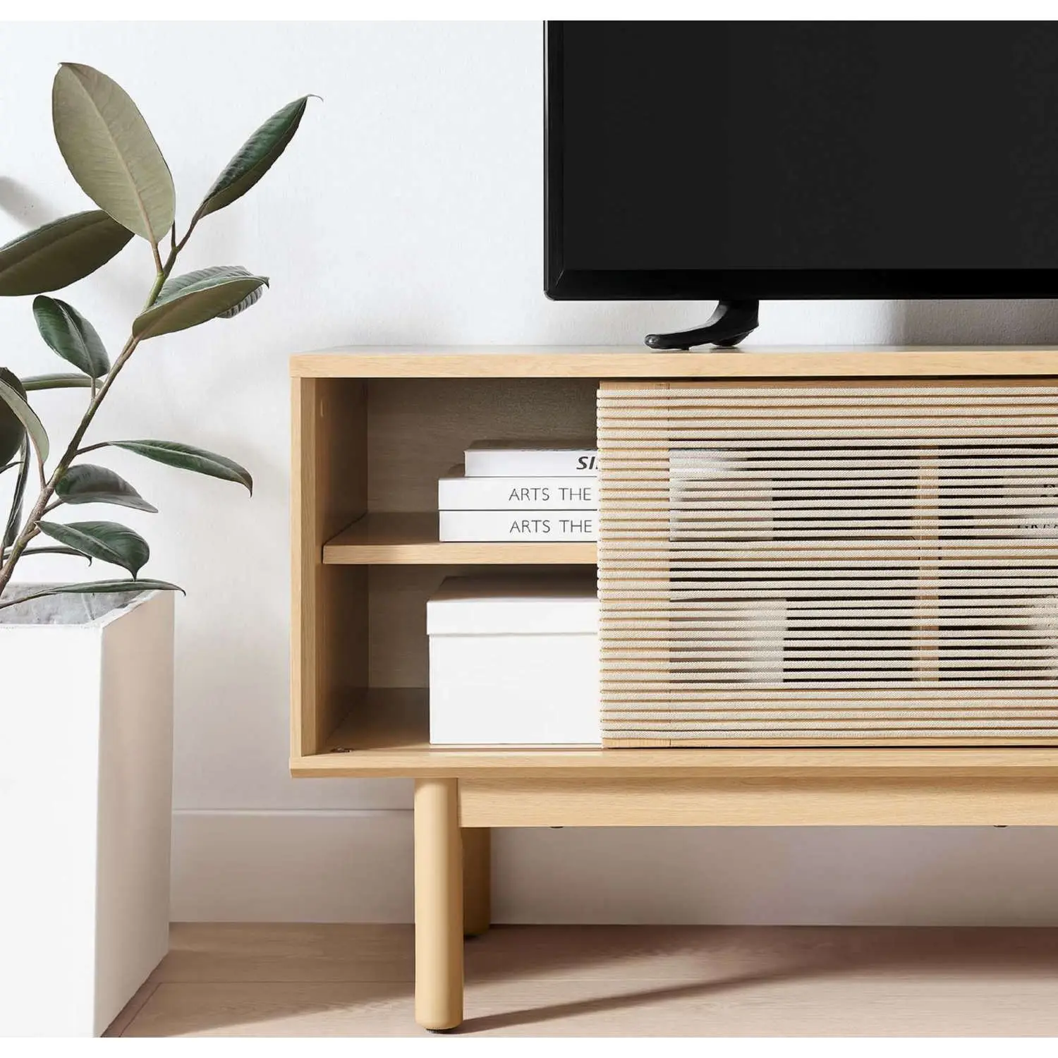 Modway EEI-6584-OAK-TAN Milo 59" TV Stand Oak Finish Tan Rope
