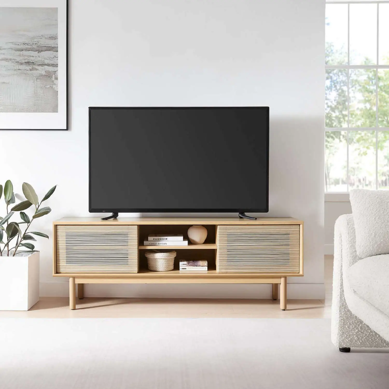 Modway Milo 59" TV Stand in Oak Finish & Tan Rope