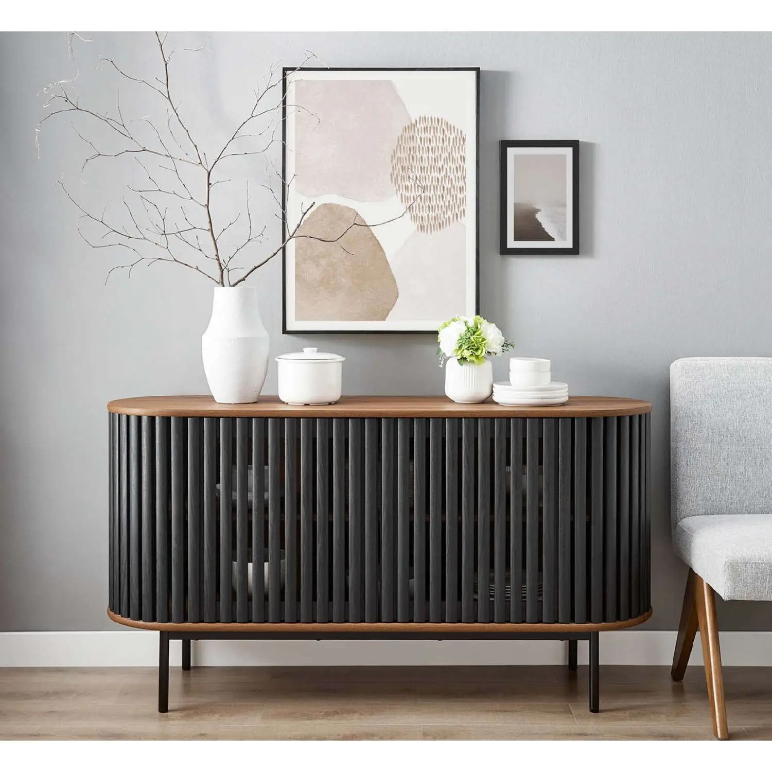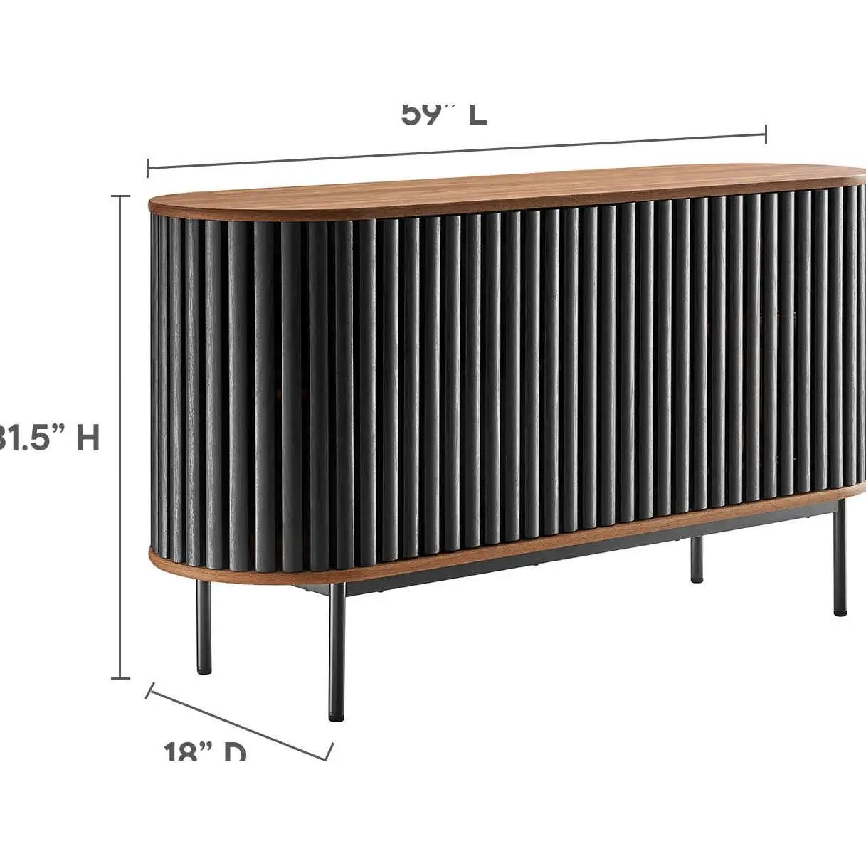 Modway EEI-6590-WAL-BLK Fortitude 59" Oval Sideboard TV Stand Walnut Finish Black Metal