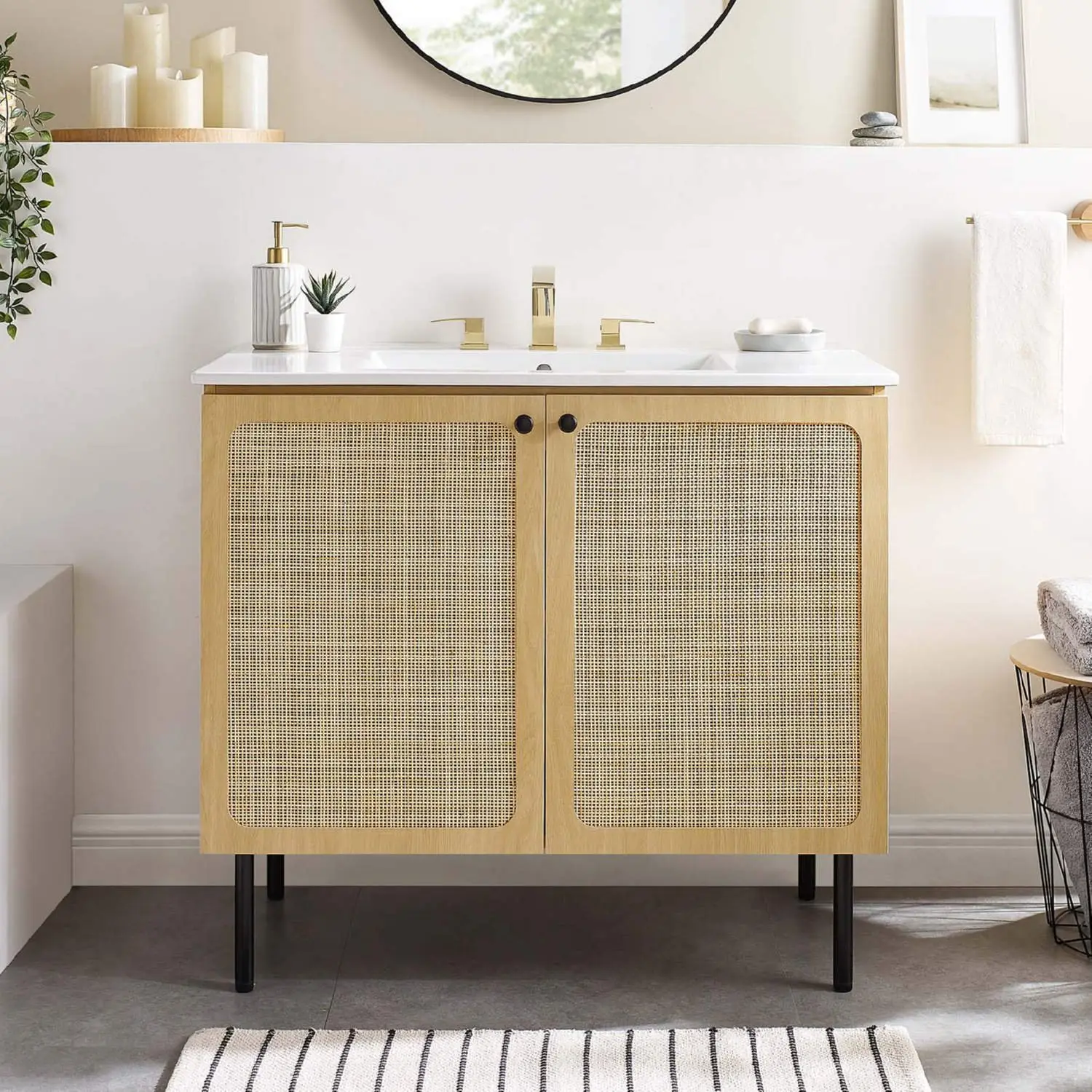 Modway EEI-6603-OAK Chaucer 36® Bathroom Vanity Cabinet (Sink Basin Not Included) Oak Wood Grain Rattan