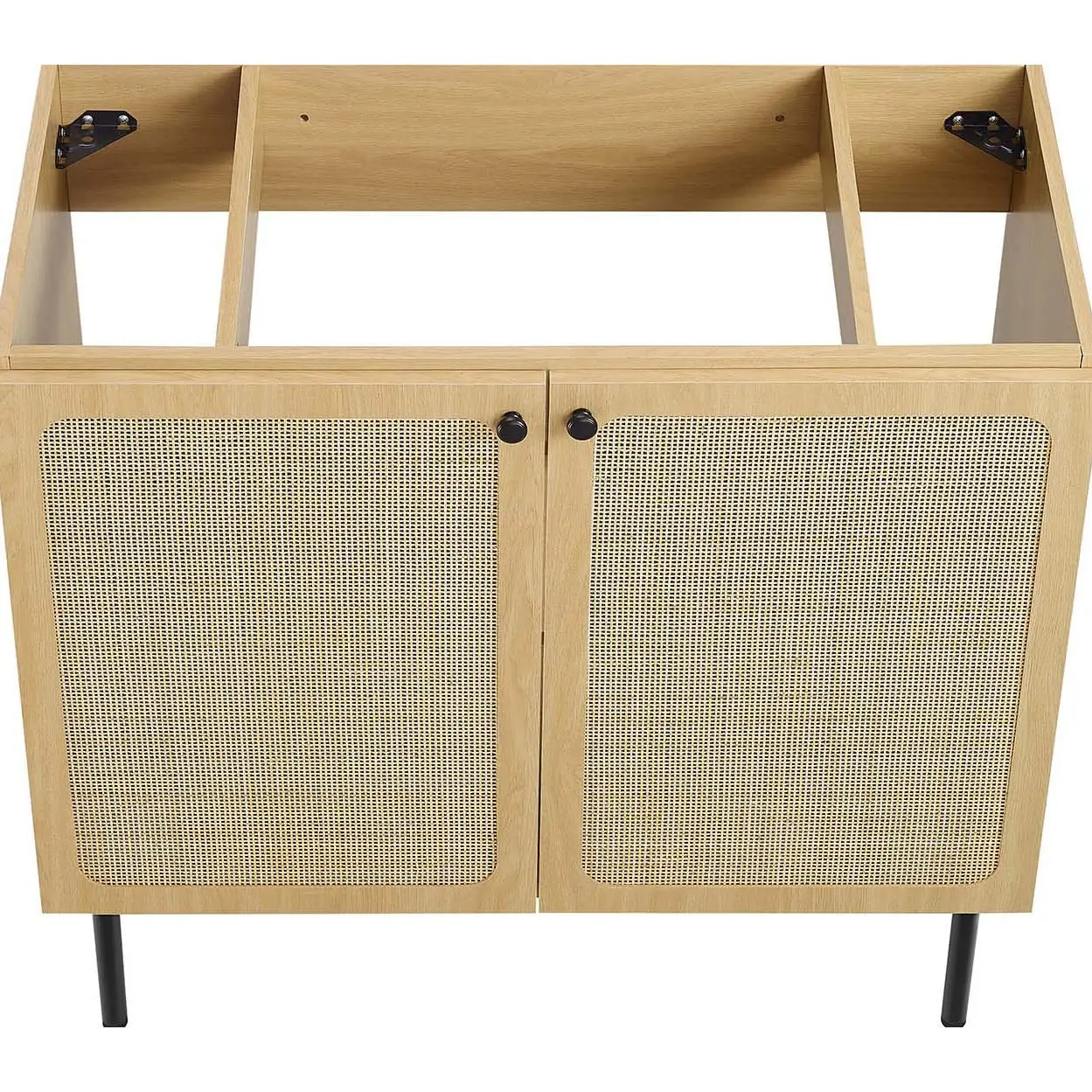 Modway Chaucer 36" Bathroom Vanity Cabinet (Sink Basin Not Included) in Oak Wood Grain & Rattan