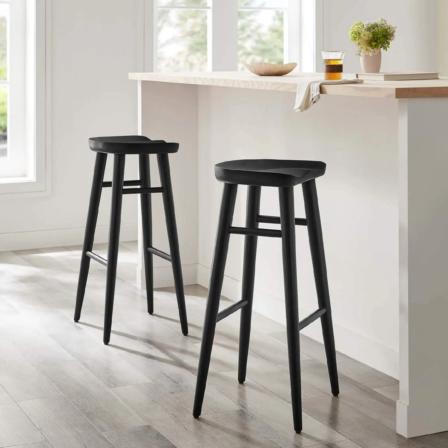 Modway EEI-6740-BLK Saville Backless Bar Stool Black Finish Wood (Set of 2)